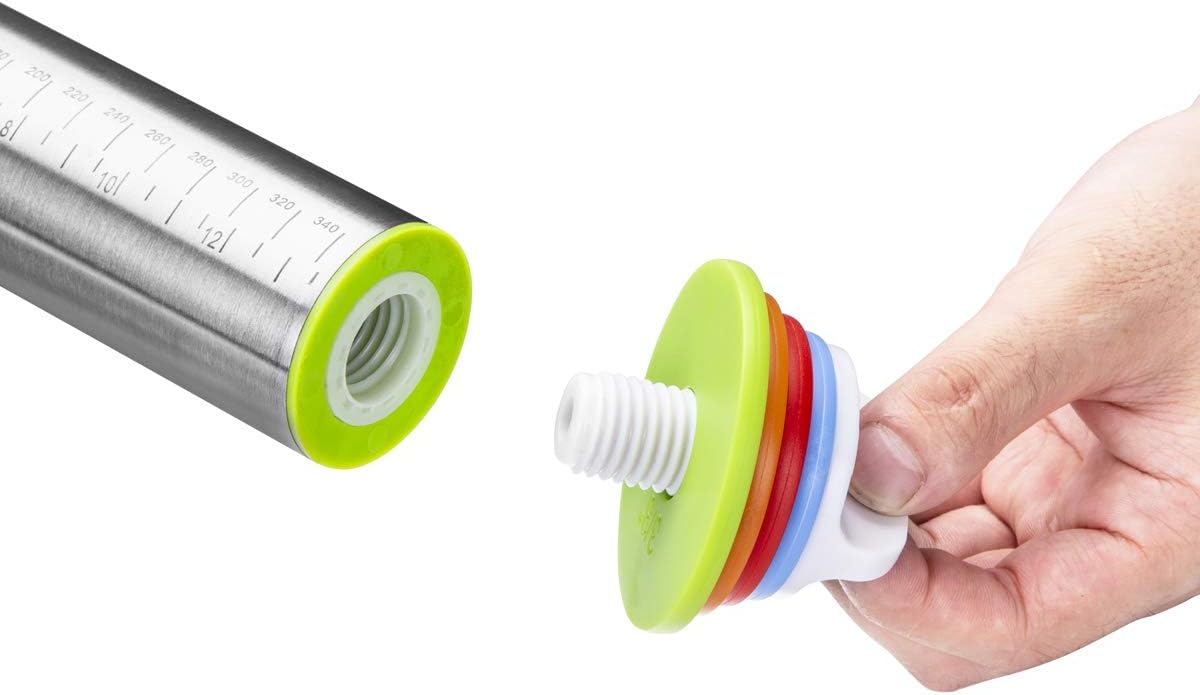 - [YOUR PERFECT HOMEMADE HELPER] - 4 sizes removable rings: 1/16, 1/8, 1/4, and 3/8 inch (2mm/4mm/6mm/10mm). Quellance adjustable rolling pin is the perfect tool and companion in baking and cooking. Easy to knead dough to the intended thickness for a novice or an old hand.