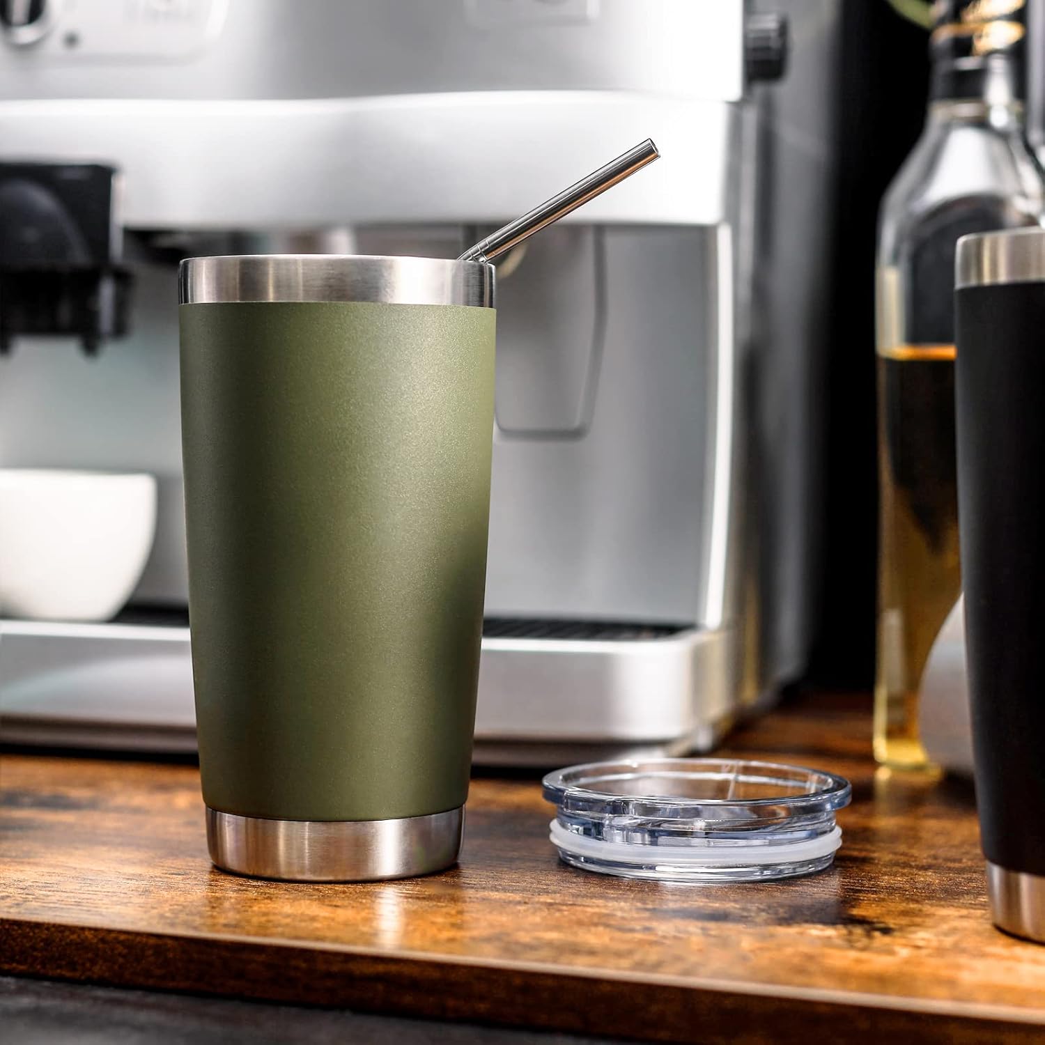 COMOOO 20oz Double Wall Vacuum Insulated Travel Mug, Stainless Steel Tumbler with Lid and Straw Durable Powder Coated Insulated Coffee Cup for Cold & Hot Drinks(Army Green, 6 Pack)