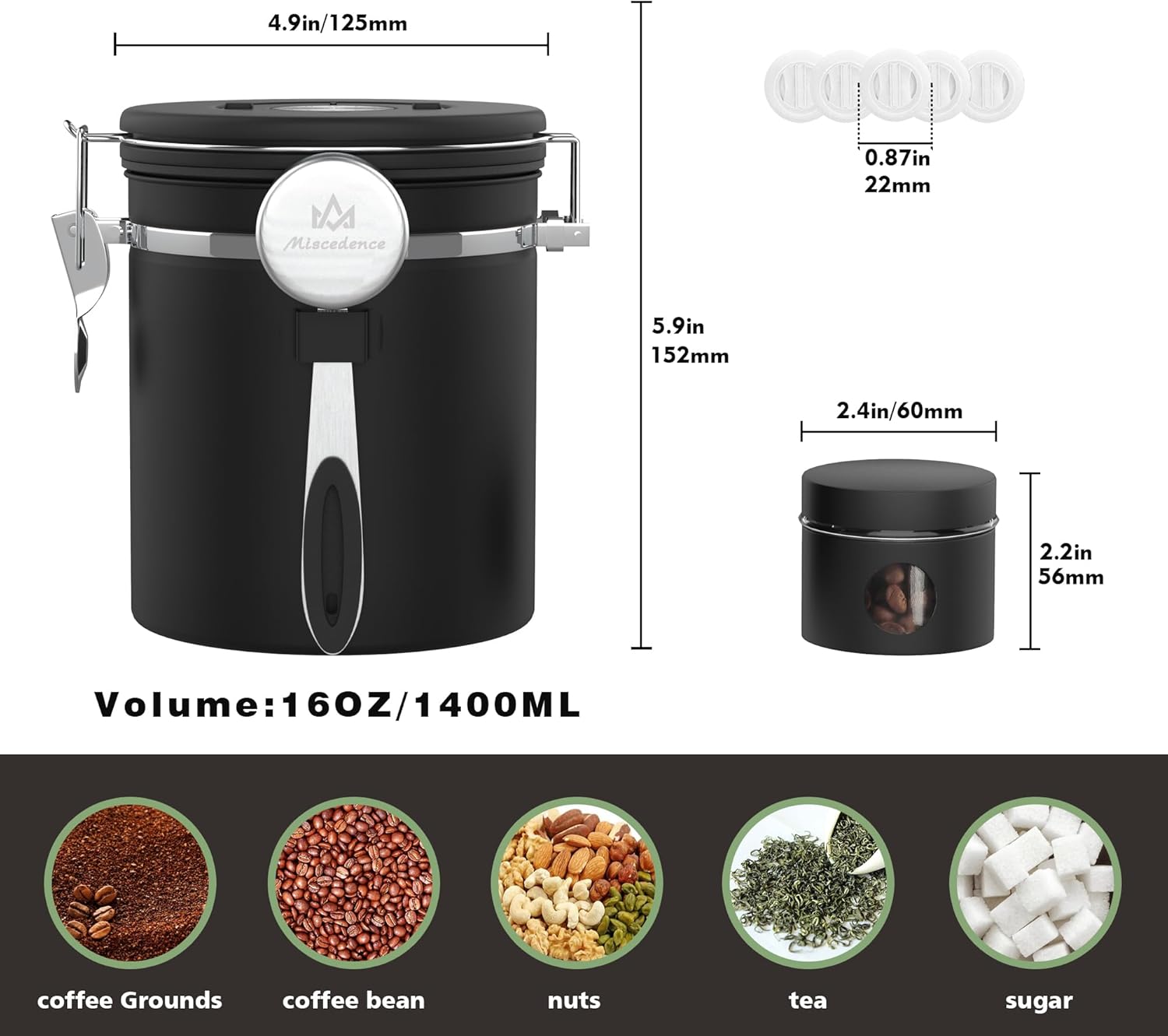 - 【Widely used】Miscedence coffee canister can be used to store coffee beans, coffee powder, sugar, tea, nuts and other foods that need to be kept fresh. It can be used in coffee shops, home kitchens, outdoor offices, or as gifts for friends.
