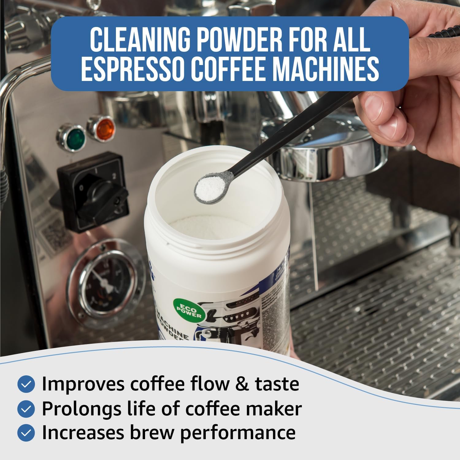 - 👉 COMPATIBILITY - Espresso machine cleaning powder suitable for manual & semi-automatic espresso coffee machines. This espresso machine accessory is compatible For use on all manual and semi automatic espresso coffee machines, and any coffee machines with 3 way valves From home to commercial espresso machines, it can also be used on coffee pots and brewers, it is a very versatile cleaner and in each case contributes to a fresher tasting cup of coffee.