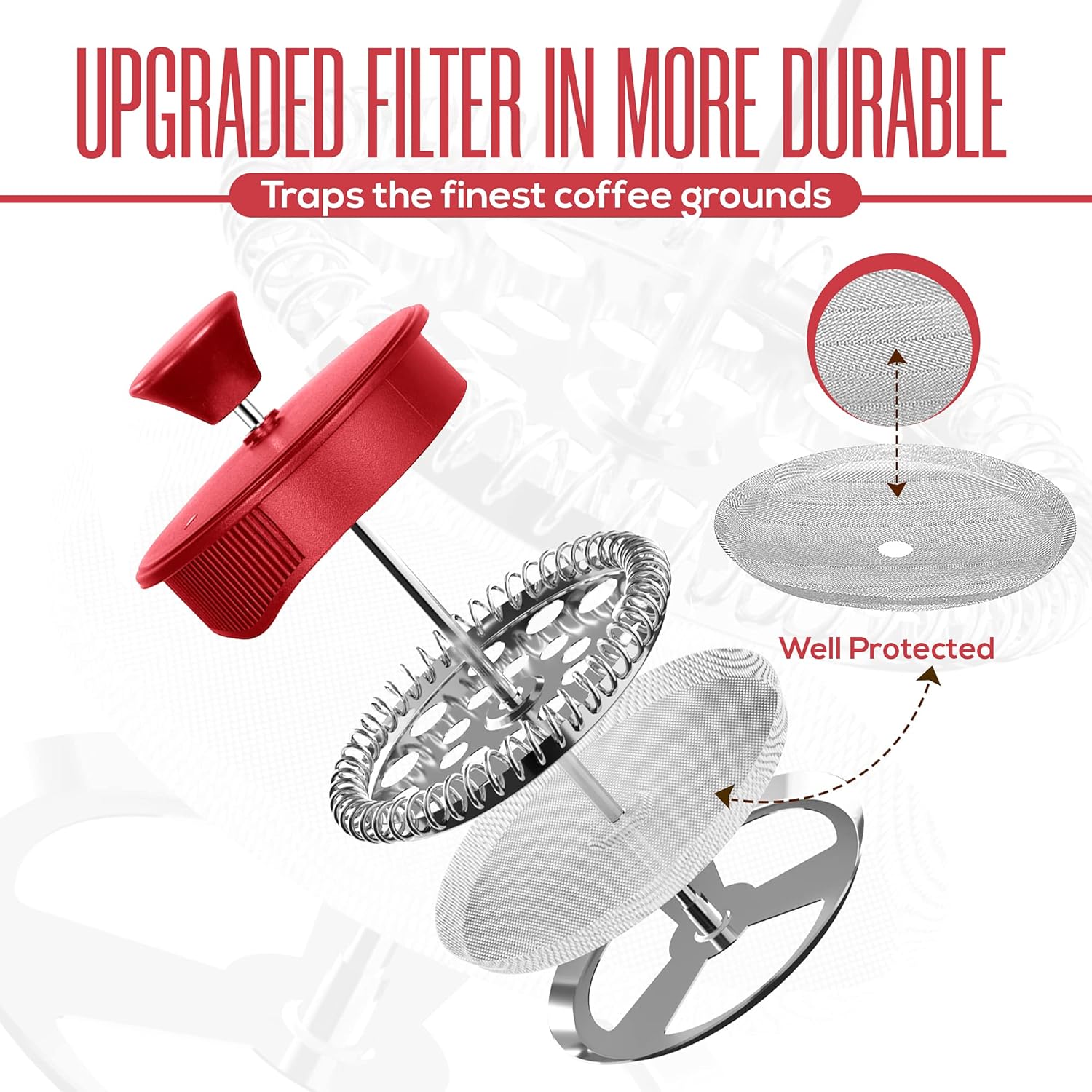 Utopia Kitchen 12 Ounce 0.35 Liter French Press Coffee Maker, Tea Maker, Travel Coffee Presses, Heat Resistant Thickened Borosilicate Coffee Pot for Camping Travel Gifts, Red Pack of 1