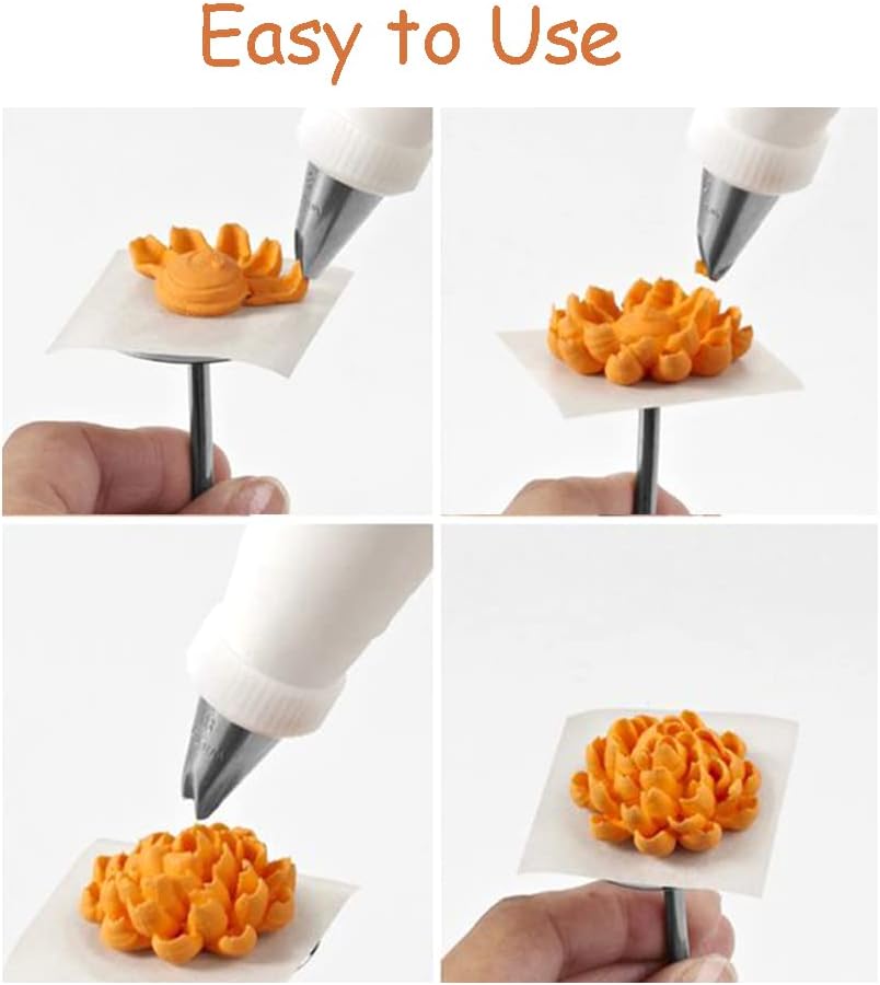 - EASY to USE & CLEAN:Put the flower tips into the piping bag(not included),just a little pressure on the pastry bag, you can create beautiful flowers.Wash in hot soap water and dry after use.Dishwasher available.