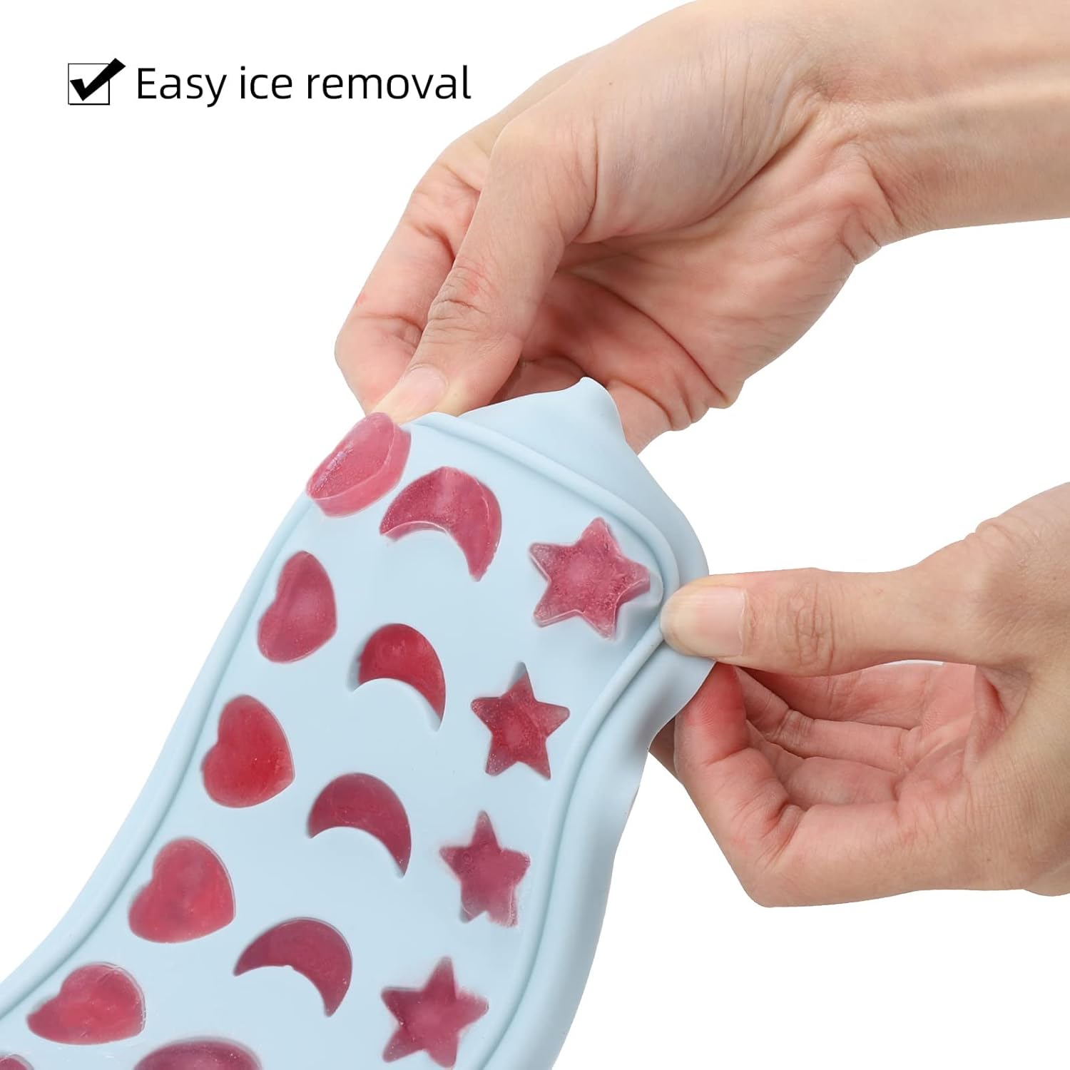 - 24 cavities Heart,star and moon shaped ice mold. Easy to fill with the come with liquid dropper. Operating temperature range from -104℉ to 446℉