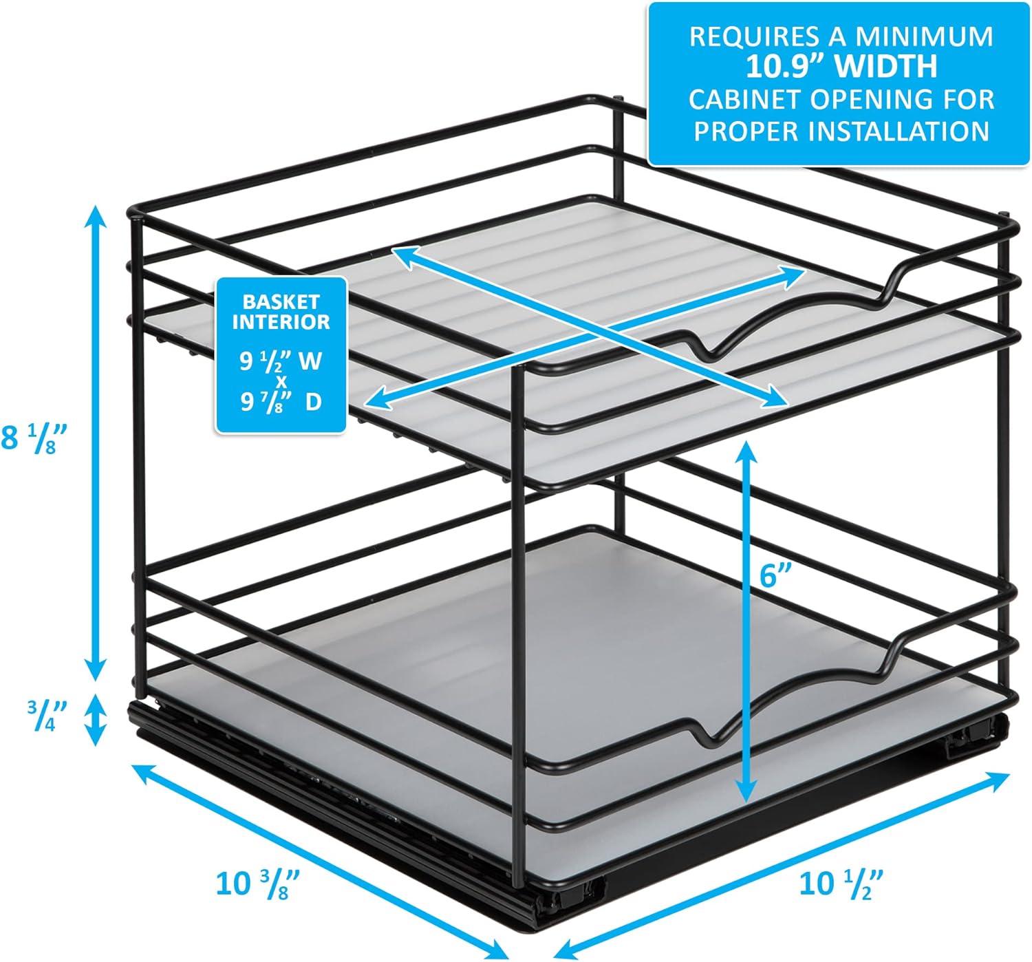 Pull Out Cabinet Organizer for Spices, Cans - Heavy Duty with Lifetime Limited Warranty- Pull Out Spice Rack- Cabinet Pull Out Shelf for Cans,Dishes, Etc, 20-3/8"Wx 10-1/2"D x 2-3/4” H, Black