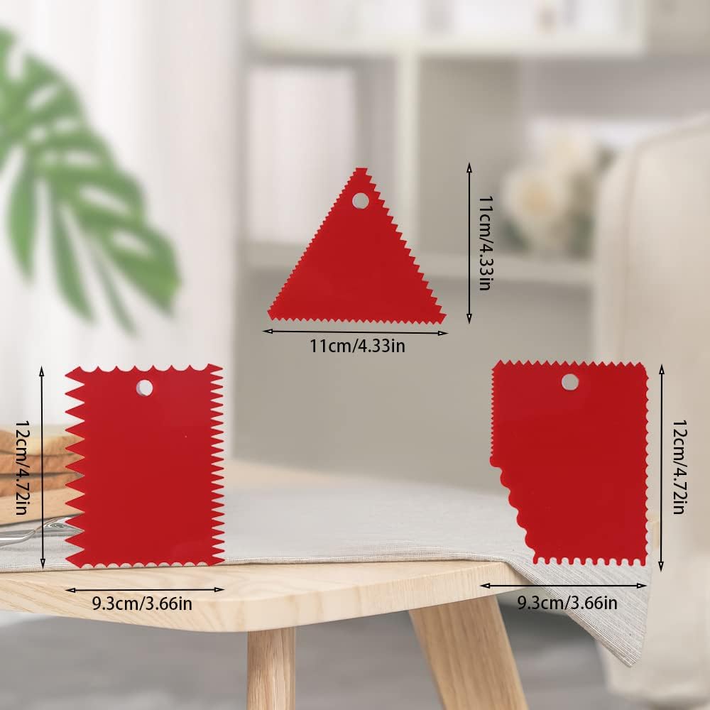 - Package include:One set of 9 cake decorating smoother dough scraper. Color: Multicolor(3pcs-white+3pcs-blue+3pcs-red)