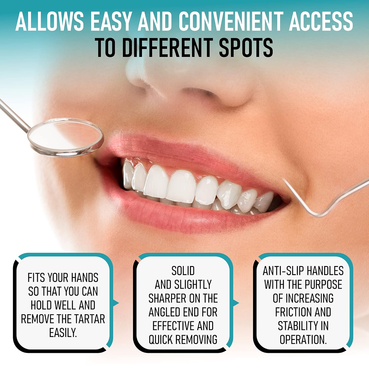 - ✔ EASY TO USE: Our products Dental Tools - Dentist tools end with a set at a different angle, which allows easy and convenient access to different spots. With this useful set, you can take all the tartar just in a few minutes without any discomfort or difficulties. Our products are carefully packed with silicone covers and you will also get a nice case, which helps to protect your tools from being scratched.