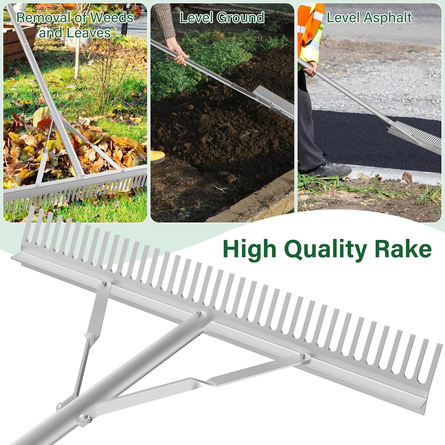 Aluminum Landscape Rake,36" Landscape Rake,Leaf Rake with 67 Inch Handle,Aluminum Yard Rake Tool for Loosening Soil,Lawn Care,Weeding Lake,Garden,Pond,Beach Landscaping(36" Head X 67" Handle)