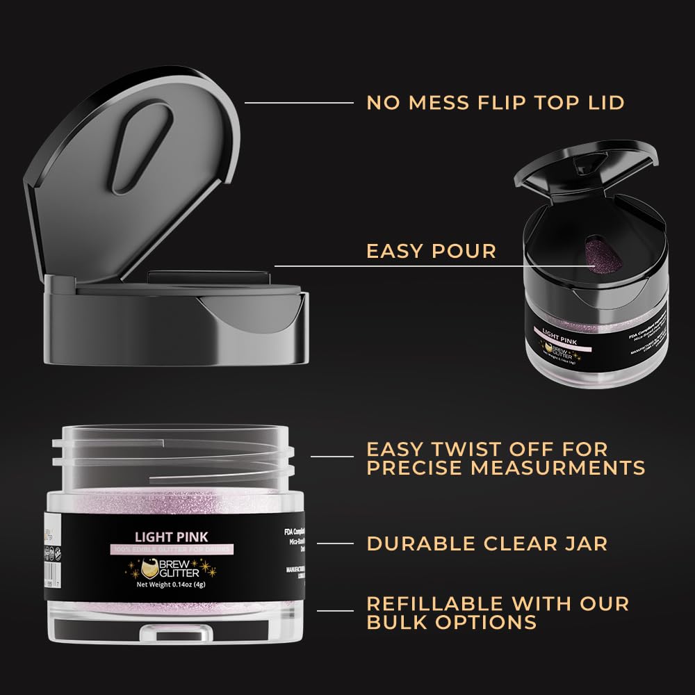 - ⭐ Brew Glitter is the #1 drink glitter manufacturer in the USA with the largest selection of light pink and other colors, boasting over 10 million satisfied customers.