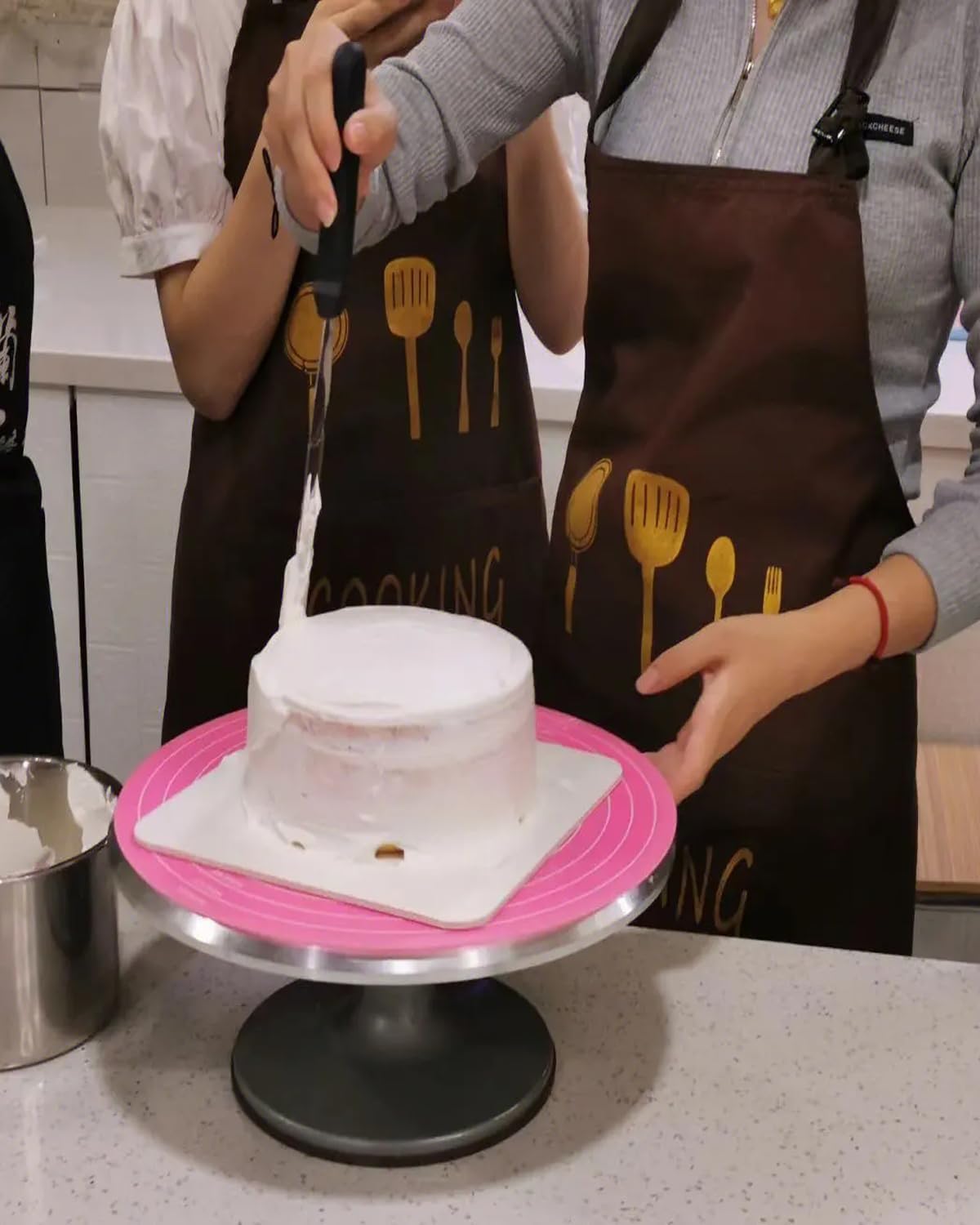 Silicone Baking Mat Cake Mat Silicone Cake Mat Silicone Baking Mat with Measurements for CakeTurntable Stand Non-Stick Heat Resistant Pastry Baking Sheet -Pink