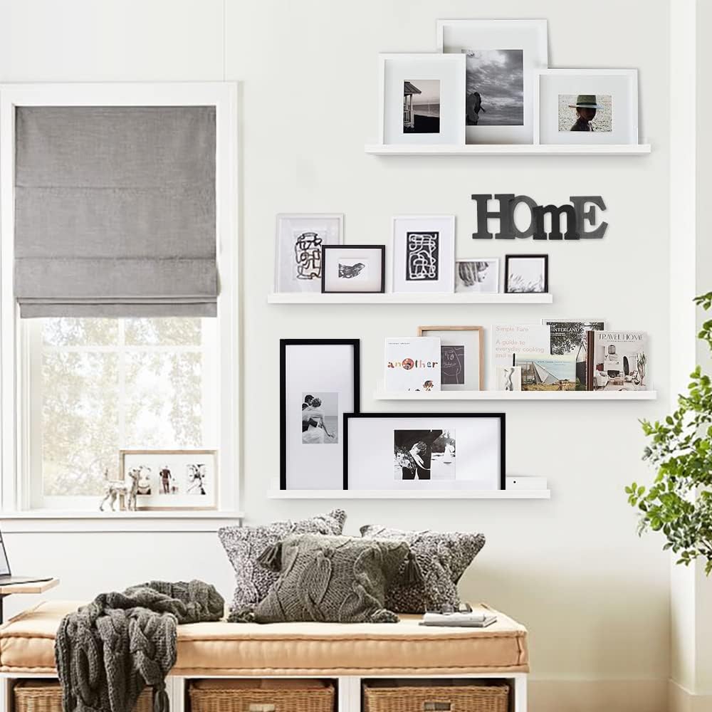 - ăMultiple combinations, More creativityă You can connect two or more picture Ledge shelves together to hang them in a line all as 72 or 108 Inches long to display picture frames, picture books, legos, collectibles and art decor in your kids nursery. They can also be hanged as vertical model as wall shelving unit rack and hold photo frames, family pictures, small plants, canvas, knick knacks, pop figurines, mugs collectibles and vinyl records form your gallery wall in your living room, bedroom, family room or hallway.