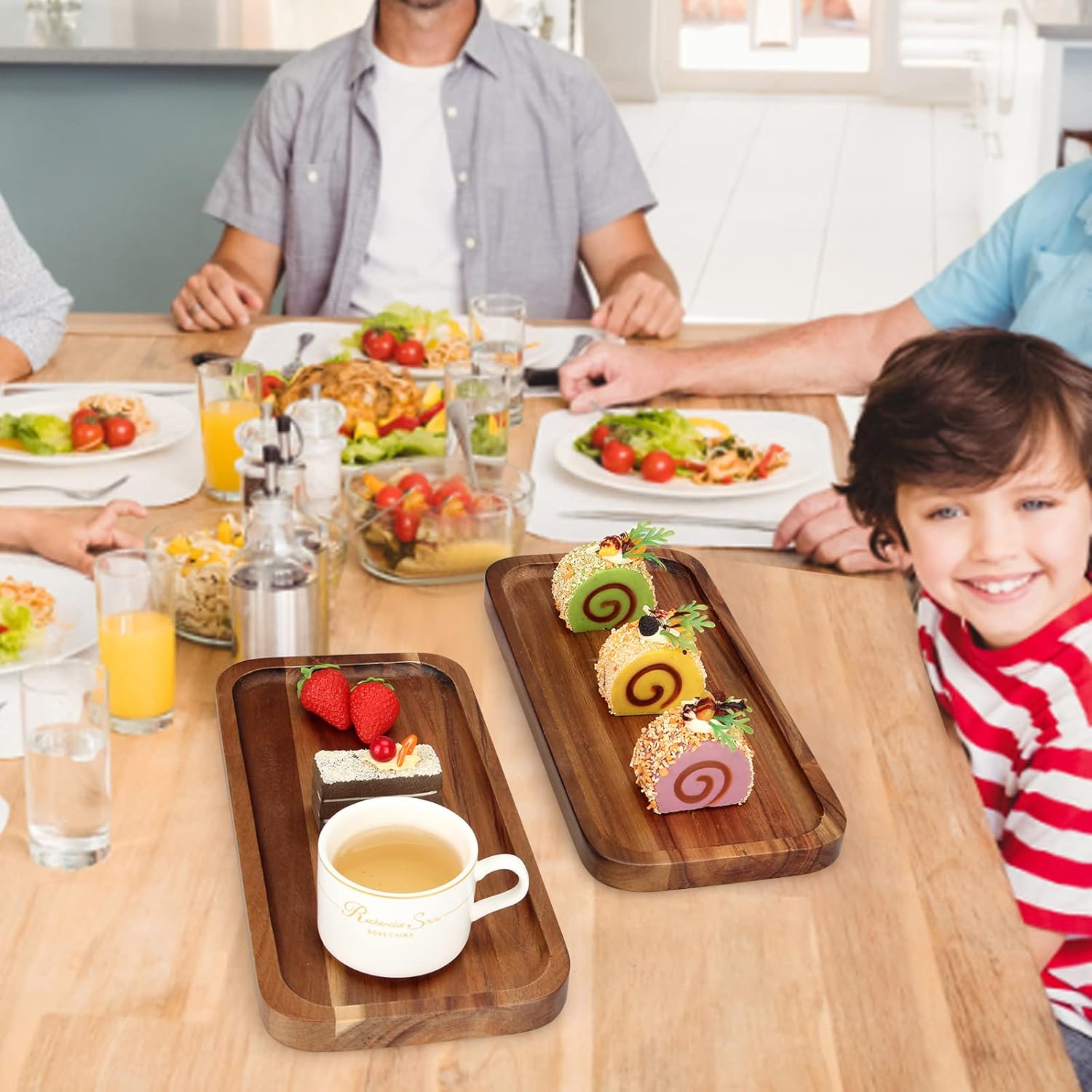 2 Pcs Rectangular Wooden Platters for Food Party Decorative Small Serving Tray Long Charcuterie Board Acacia Wood Trays Home Decor Cheese Board Rectangle Cake Dessert Plates Snack Appetizer Platter