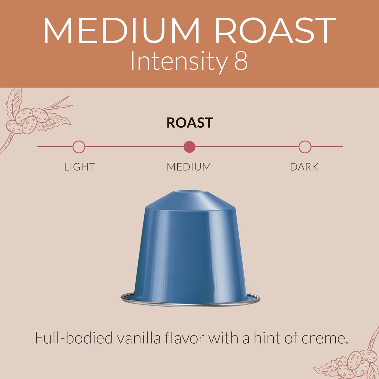 - Vanilla-Flavored Espresso Coffee: Savor the smooth blend of old-world tradition and medium roast coffee with every sip. Our Intensity 8 Vanilla coffee pods deliver a rich, full-bodied flavor with a delicate hint of vanilla and cream in each cup.