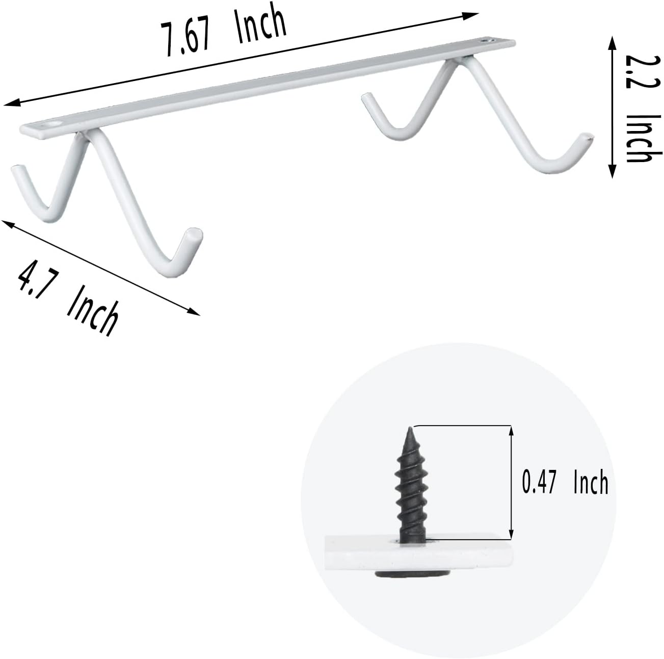 • Mug Rack Size: 7.67"x4.7"x2.2"(LxWxH),the length of screws are 0.62" and drilled into the plank to a depth of 0.47".