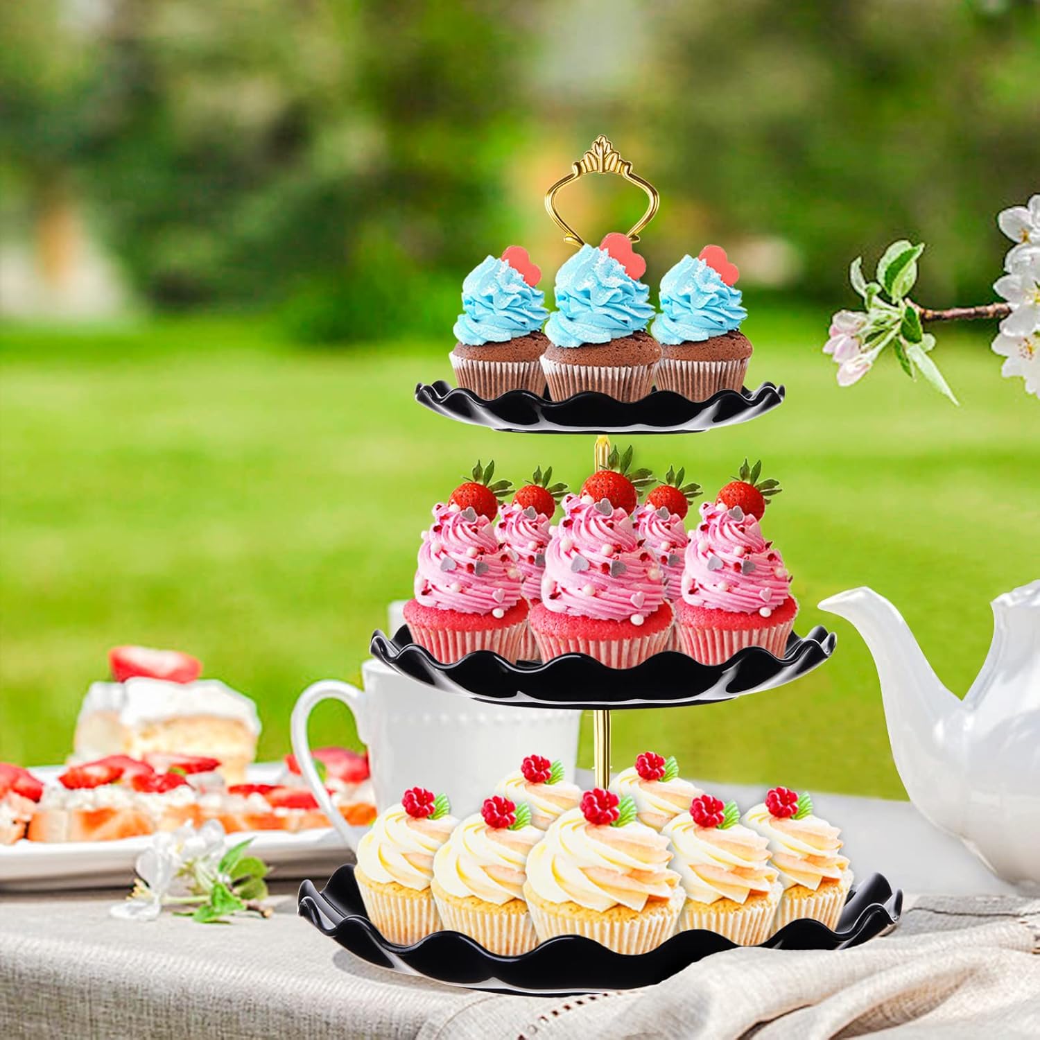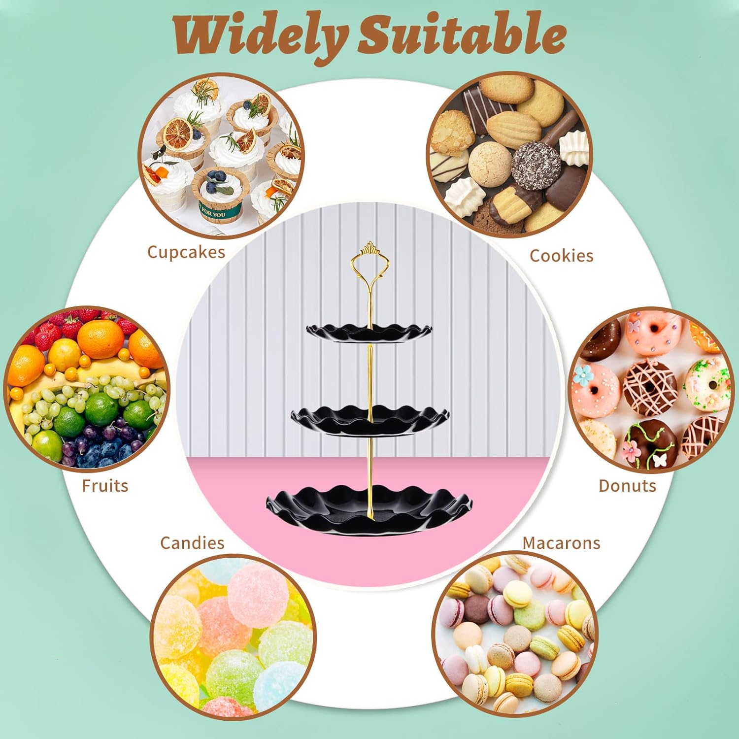 3 Tier Cupcake Stand Holder, Plastic Cup Cake Stand Towel with Tiered Serving Tray for Cupcakes, Donuts, Fruits and More, White (Black)