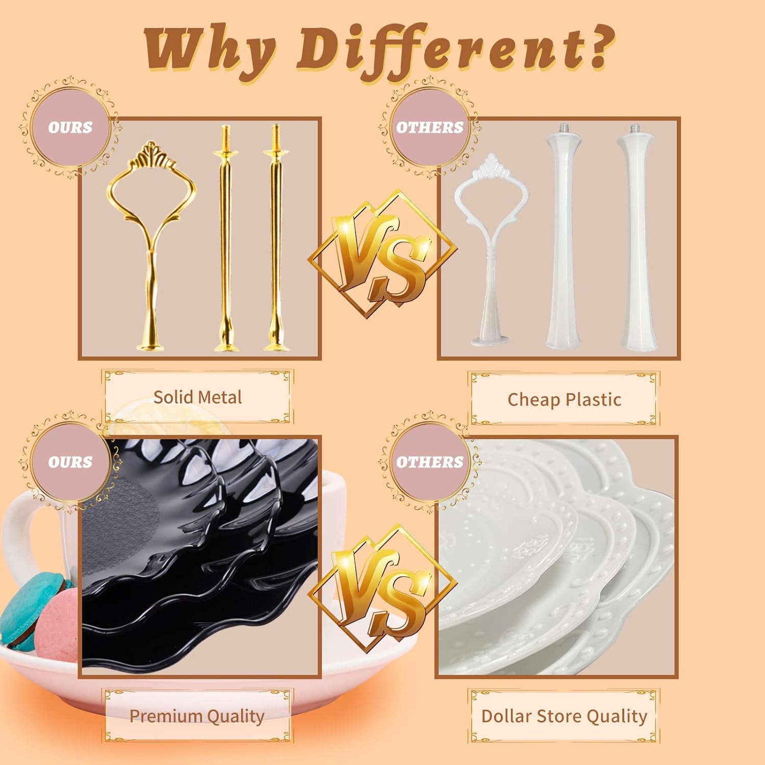 - Why Different: This cupcake stand is made of 4MM extra thick food grade plastic, much more better than 1mm dollar store quality. The bold metal rod also provide excellent texture and stability that can not be given by others