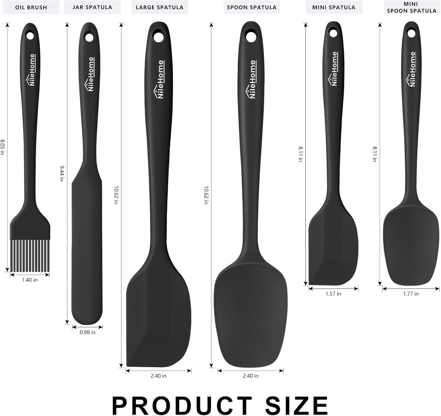 NileHome Silicone Spatula Set, 6 Pieces Food Grade Kitchen Utensils with Silicone Brush Heat Resistant BPA-free Rubber Spatula for Scraping, Baking, Cooking, Mixing