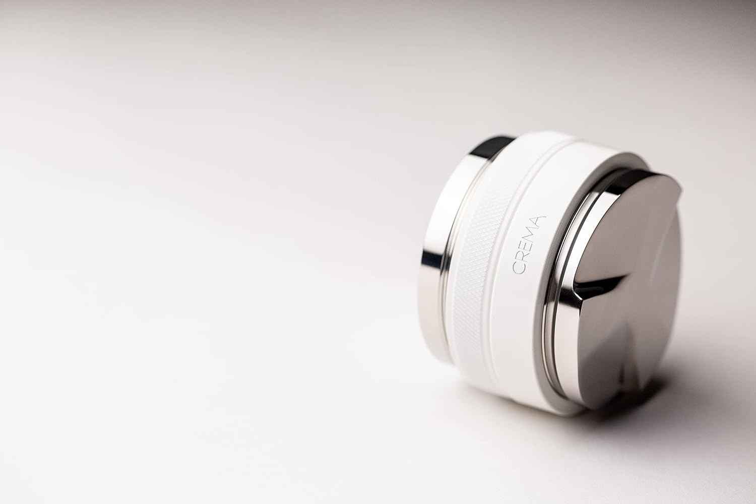 Crema Coffee Products 53.3mm Hand Tamper & Coffee Distributor | Compatible with Breville Portafilters | Double-Sided, Adjustable Depth Tool | Made with Durable 304 Stainless Steel | White