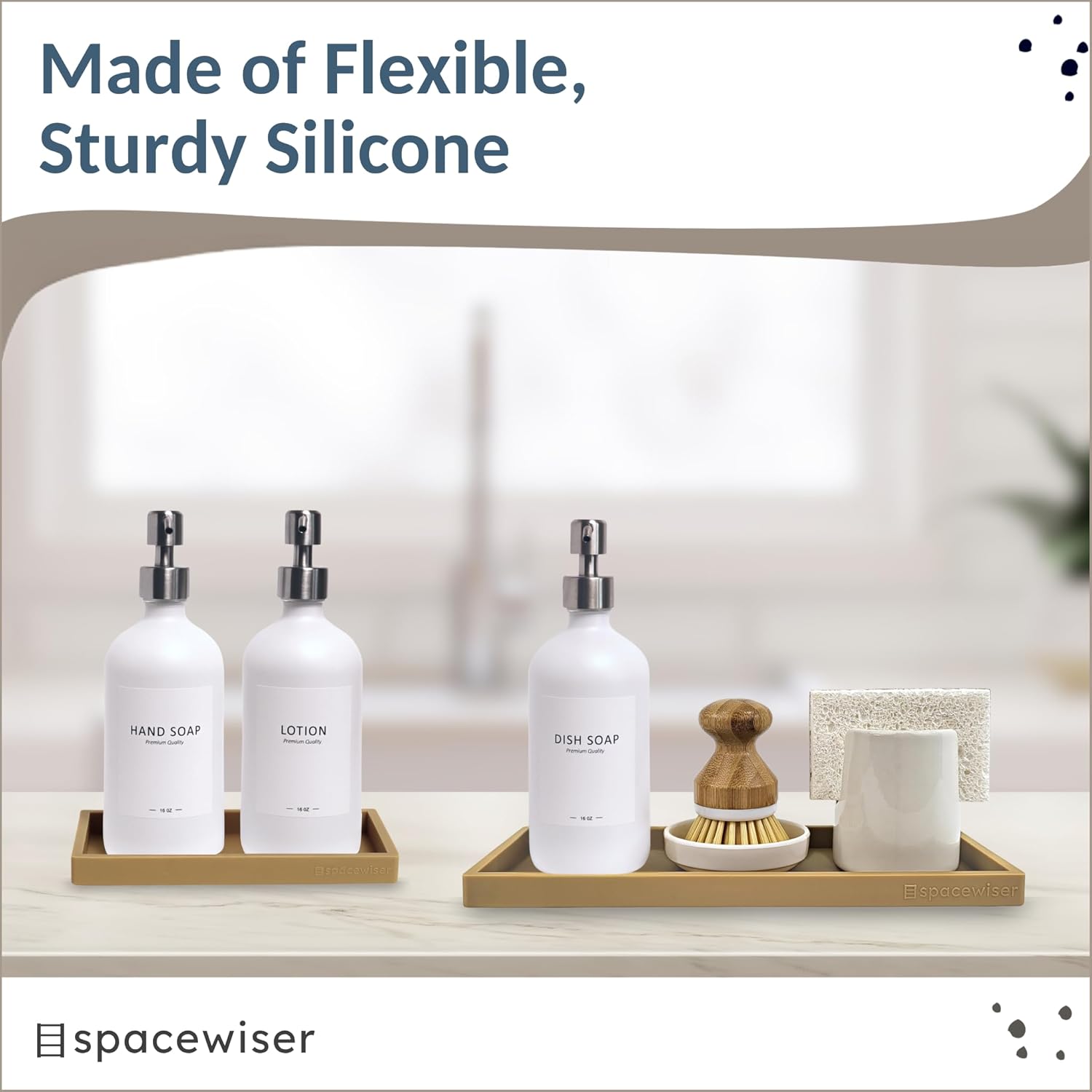 Countertop and Vanity Tray - 2 PC (11” and 7”) Shatterproof Silicone Kitchen and Bathroom Trays for Counter, Kitchen Soap Dispenser Tray, Vanity Trays for Bathroom, Perfume Key Tray