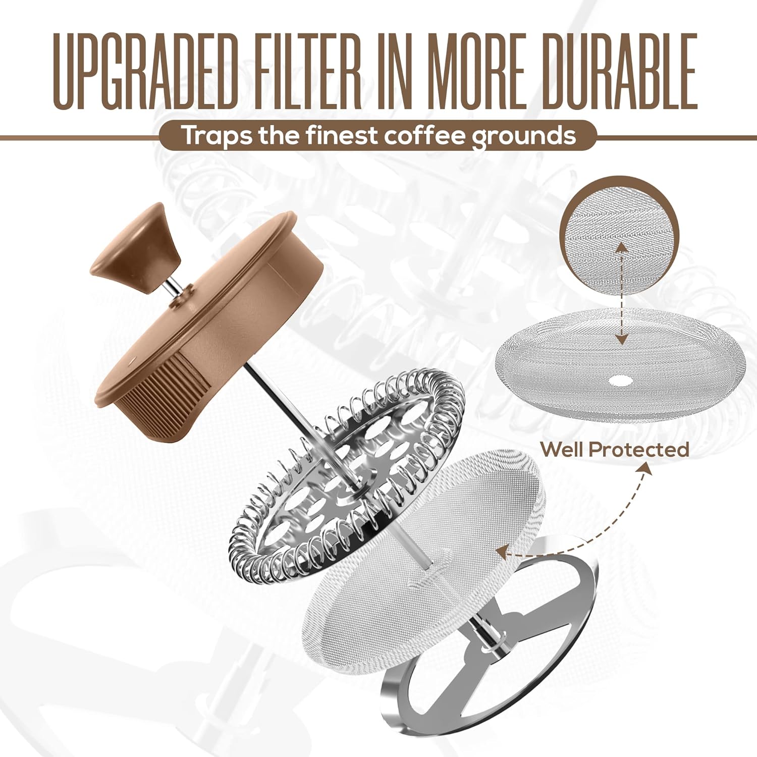 Utopia Kitchen 12 Ounce 0.35 Liter French Press Coffee Maker, Tea Maker, Travel Coffee Presses, Heat Resistant Thickened Borosilicate Coffee Pot for Camping Travel Gifts, Brown Pack of 1