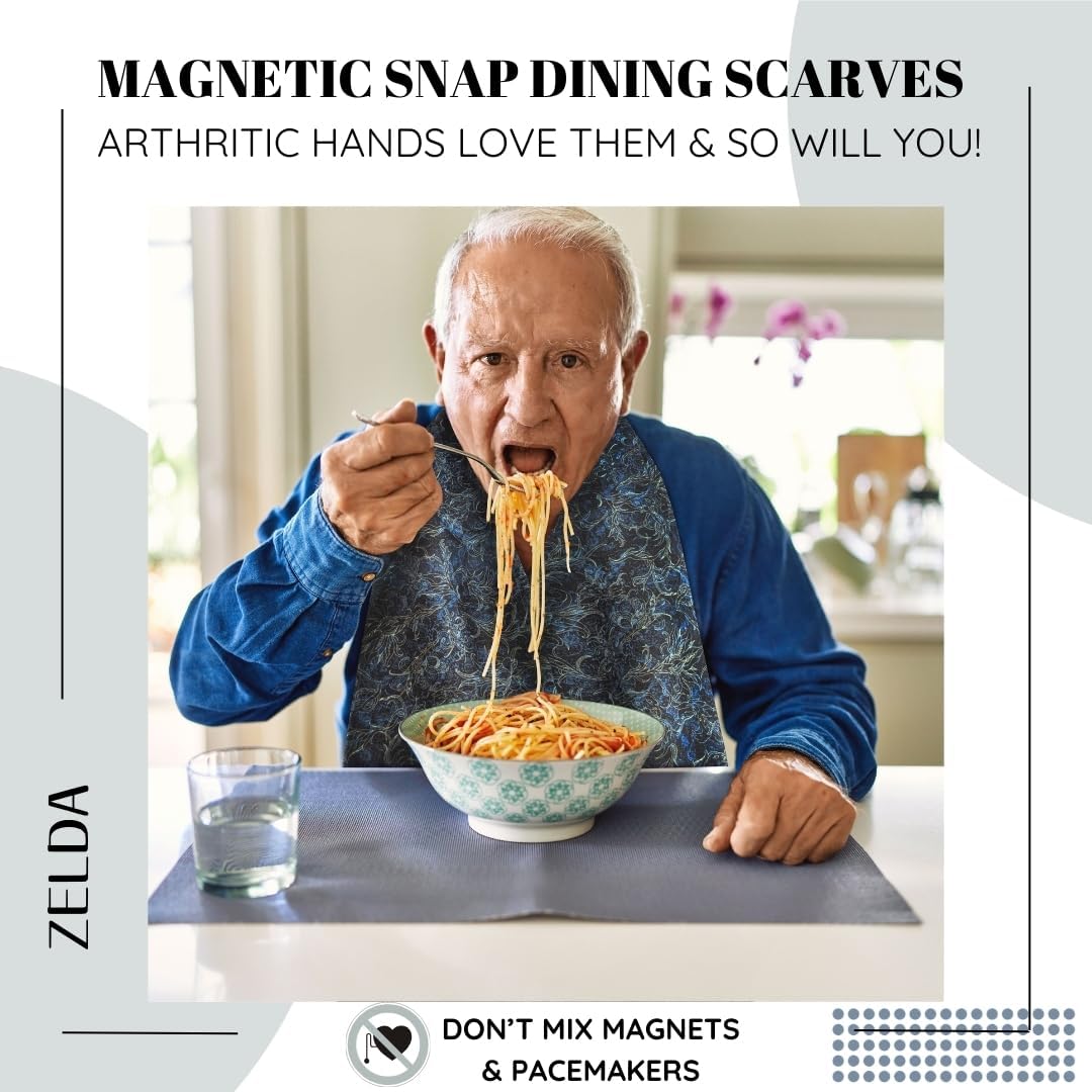 • 🎁 STAY DIGNIFIED & FASHIONABLE with our senior bibs scarves specifically designed to uphold the dignity of senior citizens. Wearing a “grown-up bib” is depressing and humiliating for many of our loved ones. Designed to Dine adult bib scarves allow our seniors to maintain a stylish and dignified look while dining with friends and family. Adaptive clothing to protect both your shirt and your dignity.