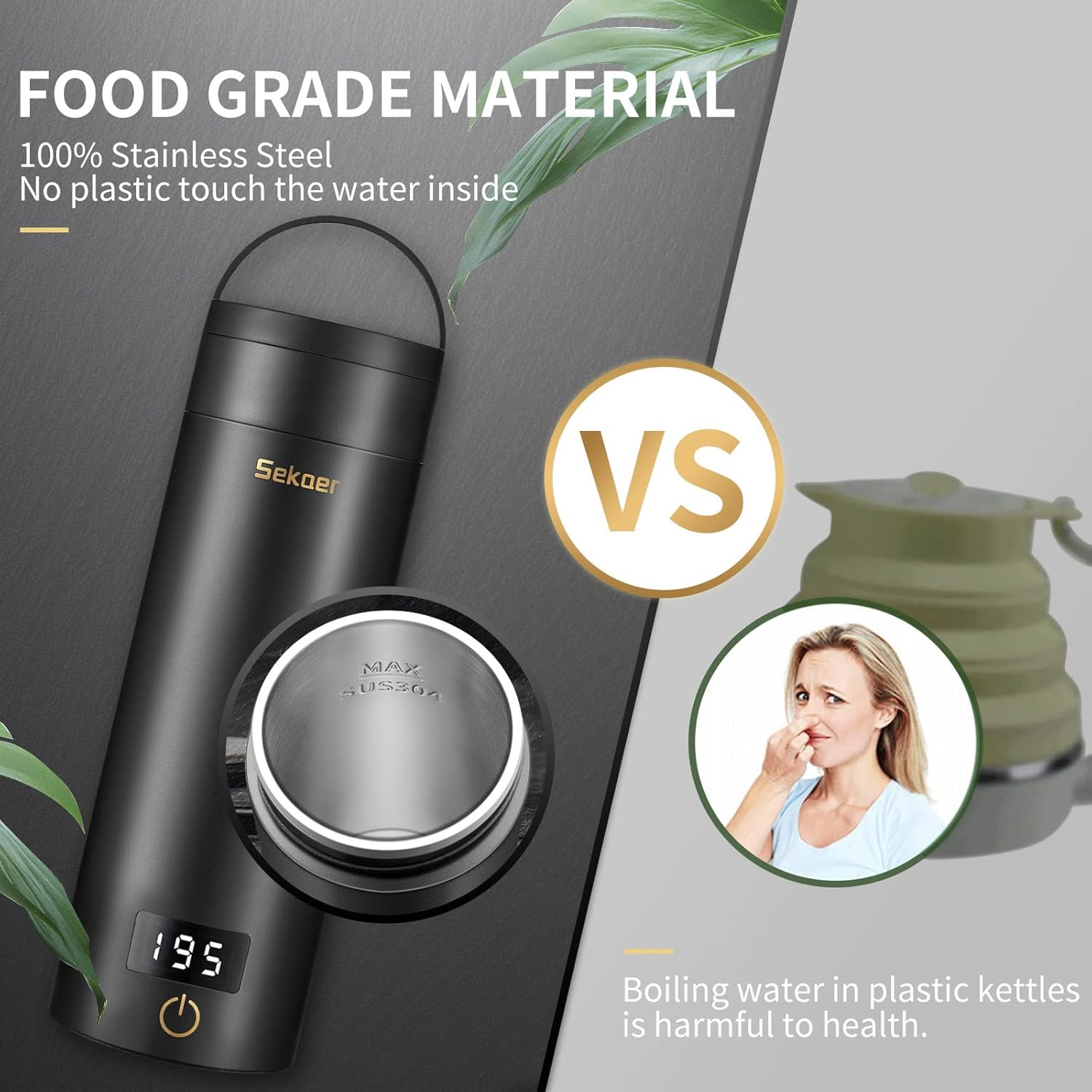 - Safe Tech - Newly upgraded exhaust vents, which can help reduce the pressure when boiling water, you can close the lid to boil the water without worrying about scalding when the water is boiled.Travel water kettle has a great seal so it won’t leak even upside down turn.