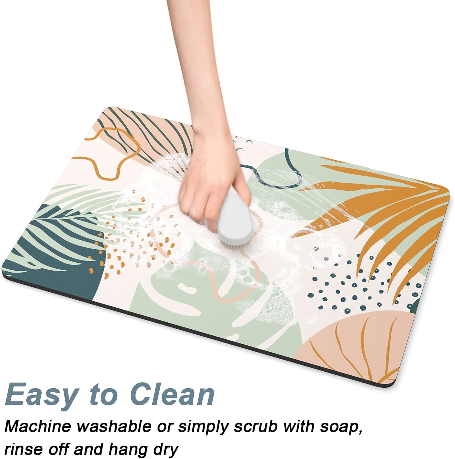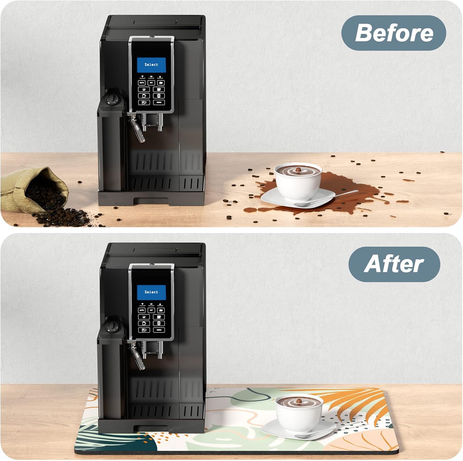 - Easy to Clean: The coffee bar mats for countertop can be cleaned with hand or machine to remove stains, up to 91% porosity material allows coffee bar mats to dry quickly without a machine