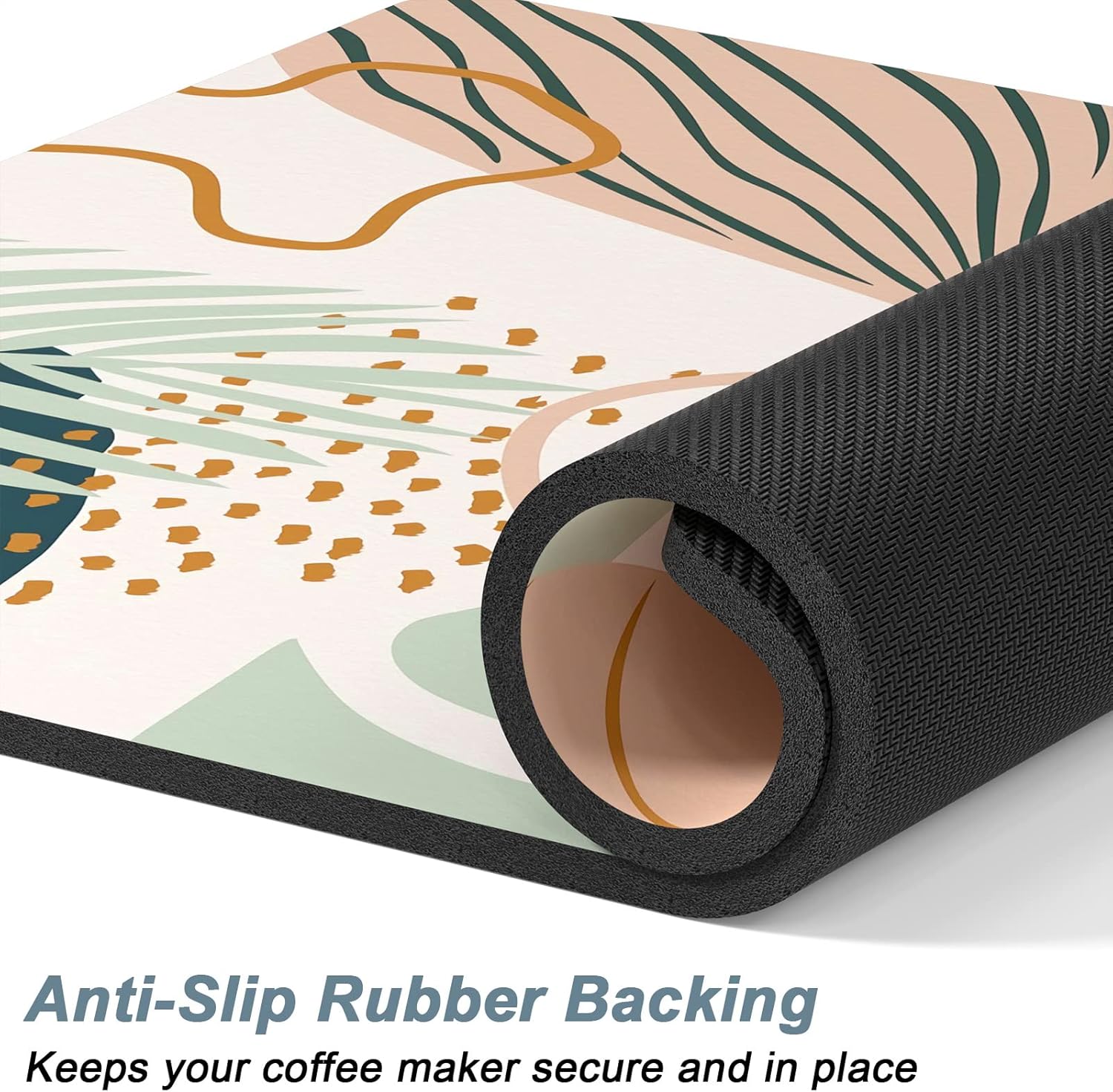 - Super Absorbent and Non-slip: Coffee bar decor mat is crafted from absorbent suede and anti-slip rubber. The surface is soft, heat-proofand and can quickly absorb liquid. The anti-slip rubber backing can firmly grip the floor without unwanted sliding