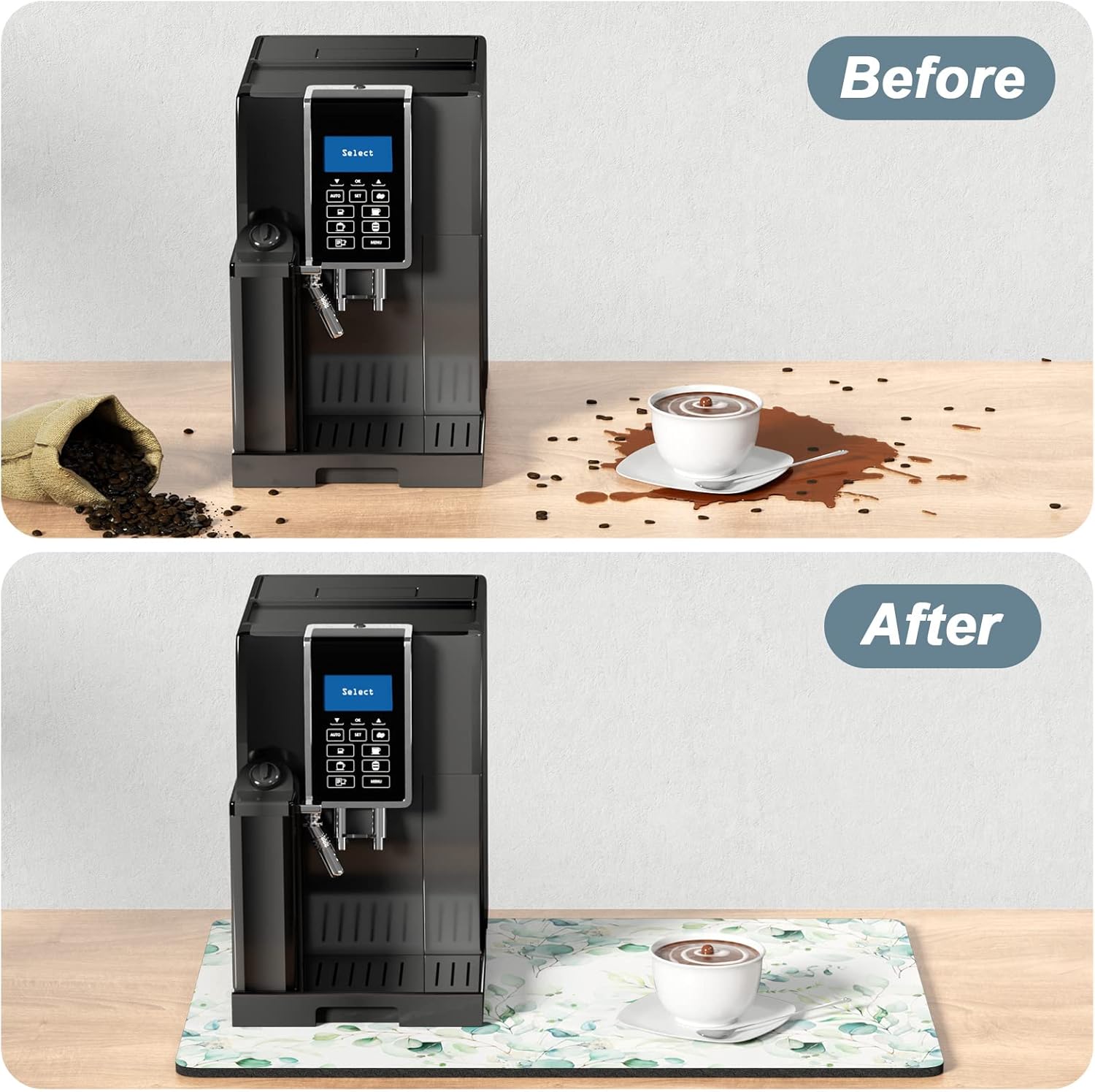 - Easy to Clean: The coffee bar mats for countertop can be cleaned with hand or machine to remove stains, up to 91% porosity material allows coffee bar mats to dry quickly without a machine