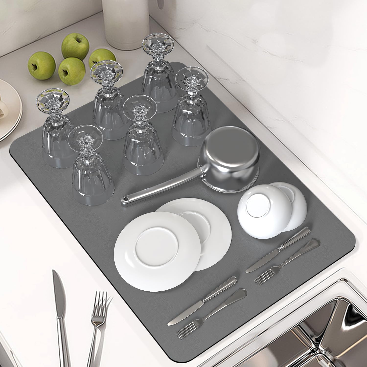 PoYang 24"x16" Coffee Mat Large, Coffee Bar Accessories for Countertop, Absorbent Dish Drying Mat, Anti-Slip and Hide Stain Pad for Espresso Machine, Espresso Maker and Kitchen Counter, Gray