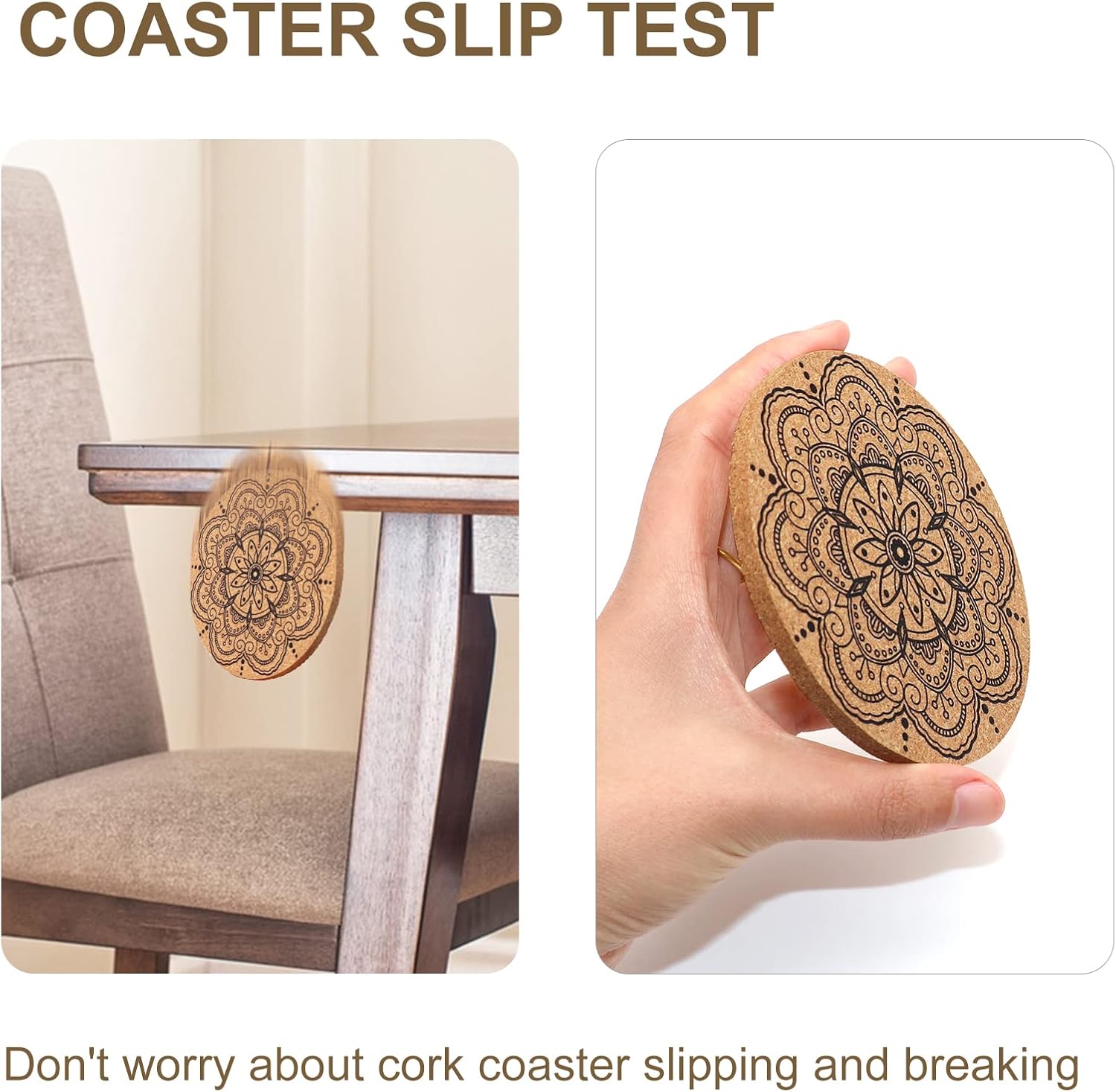 - METERIAL: Cork coaster is refined from oak bark, bonded and pressed by eco-friendly resin glue to be a cork coaster.