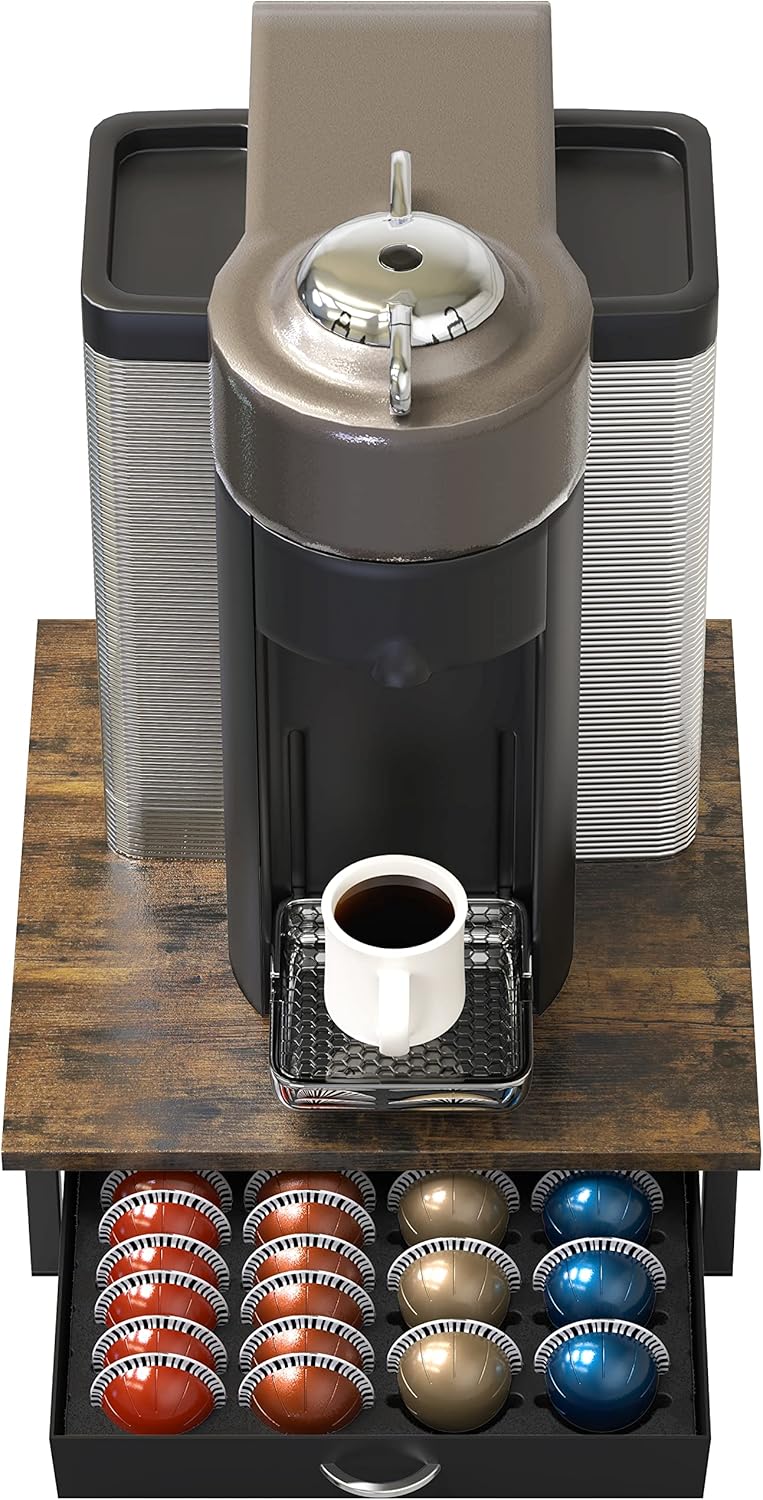 - [ Drawer Design ] Featuring a convenient sliding drawer, it allows easy access to your coffee pods while keeping them organized and neatly stored.