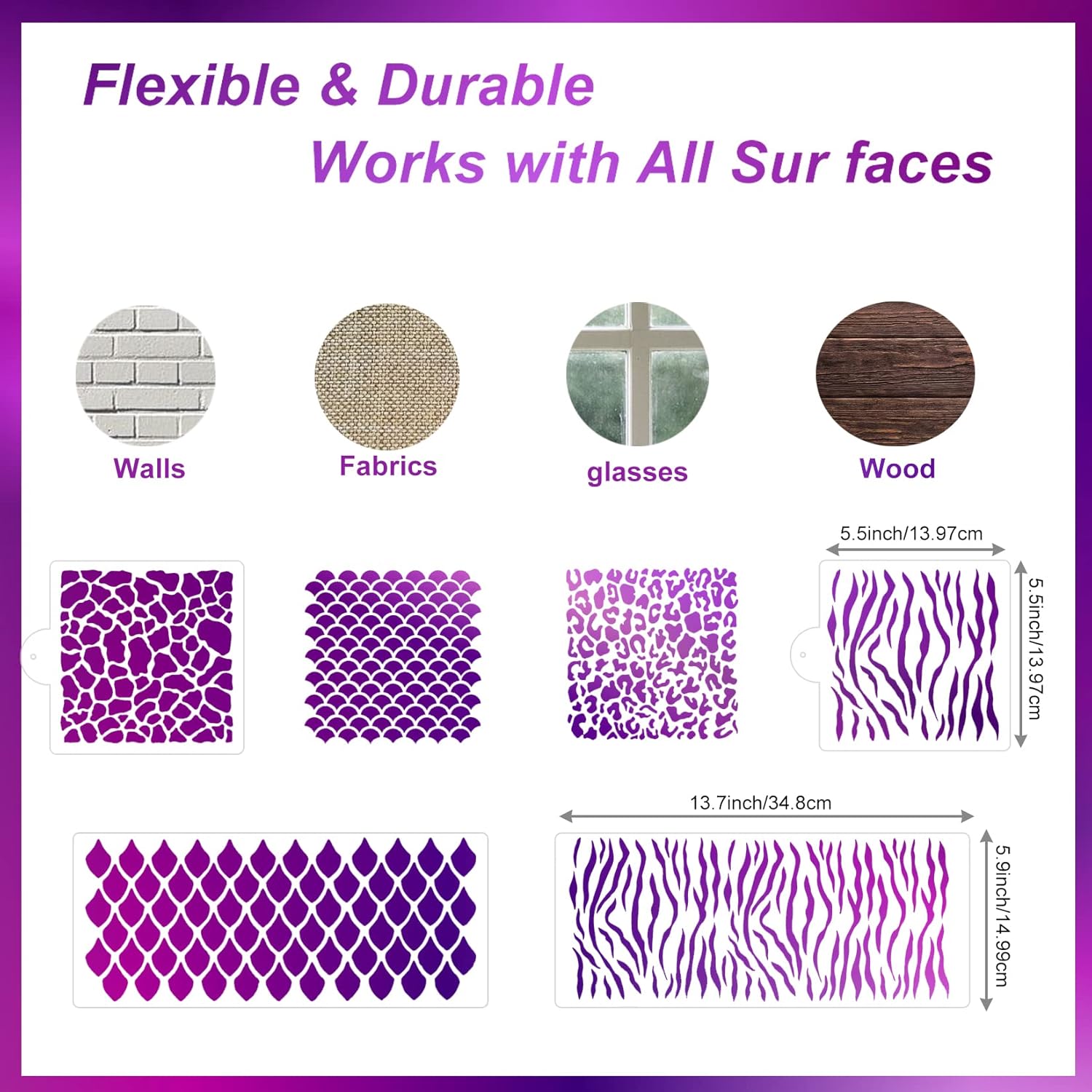 Cake Stencils Decorating Buttercream Cookie Stencils for Royal Icing Leopard Airbrush Snake Skin Mermaid Scale Stencil Cheetah Cow Print Templates for Baking (Large Cake Stencil)