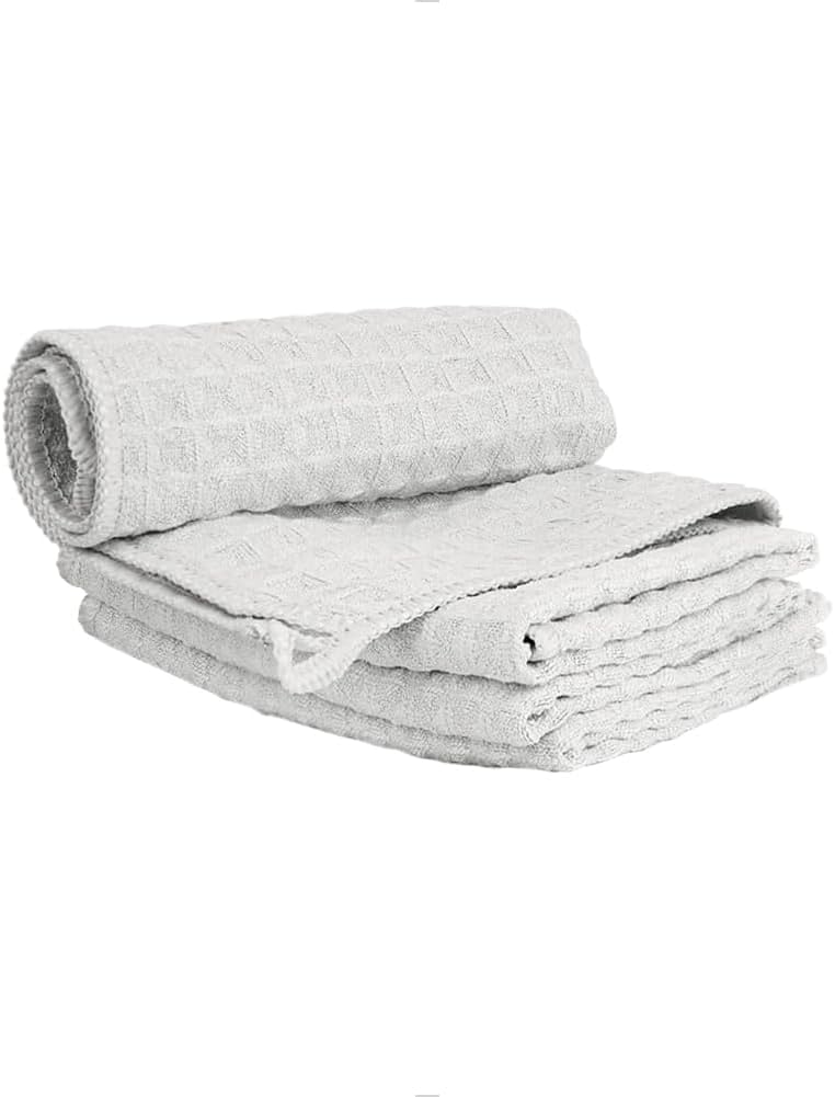 - FAST DRY AND DURABLE: Waffle weave design makes the cloth holds liquids quickly and dry fast, no need to worry about the bad smell. Machine wash with similar colors. Light grey color micro cloth to coordinate with your home and kitchen cleaning.