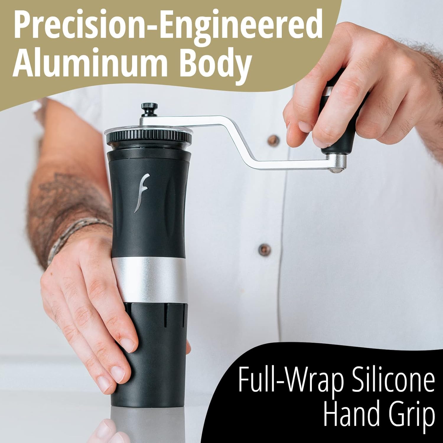 - Grind any Coffee with Comfort - The all-manual Royal hand grinder comes standard with a silicone grip that is embedded in the stainless steel shaft. No matter where you put your hand when grinding coffee beans, you’ll feel the comfort and torque this grip provides. In addition, this manual hand coffee grinder also includes a thumb rest for extra grip when grinding light roasted coffee beans.