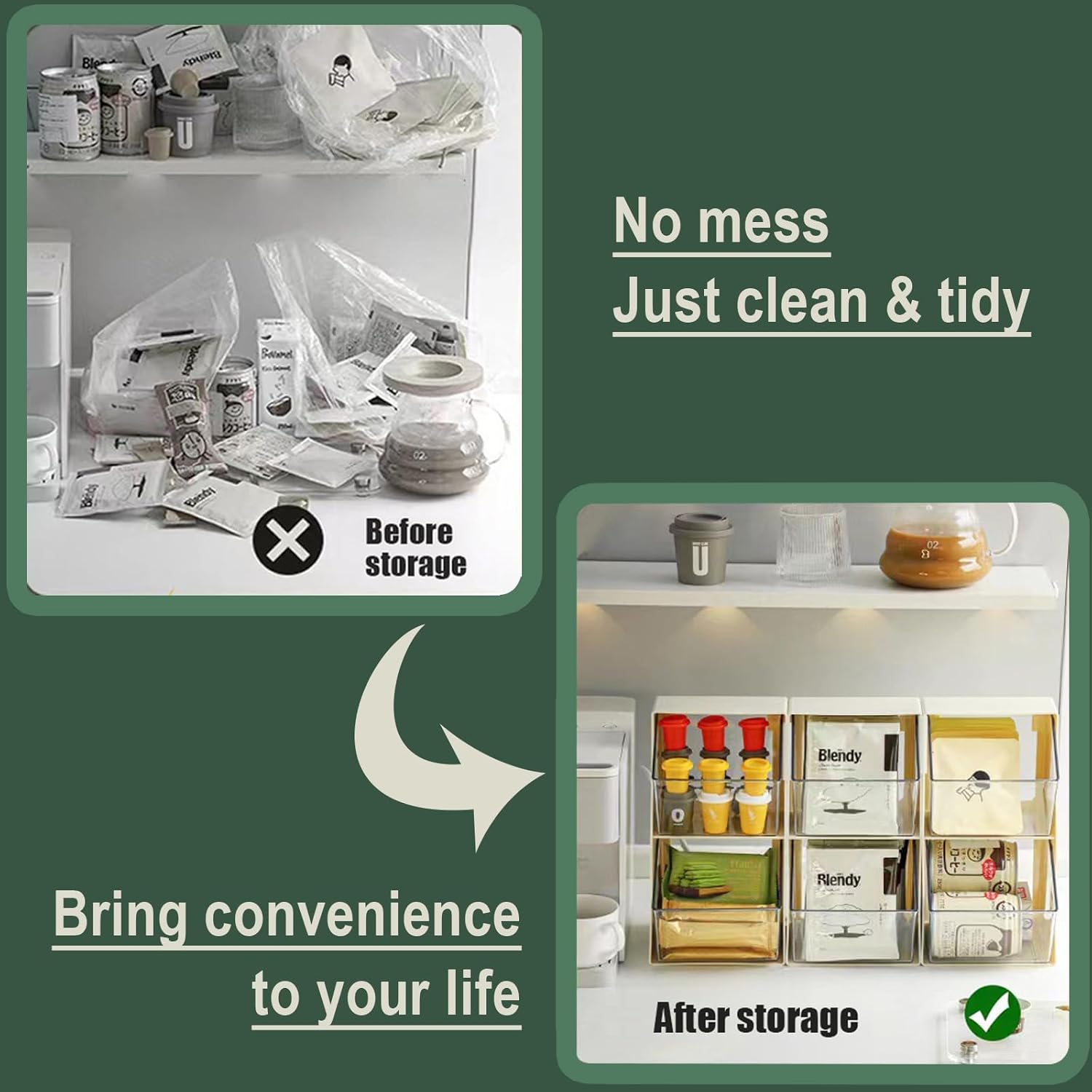 - Convenience to Clean: The drawers of tea bag storage organizer can be removed and washed with water directly, which is easy to clean. Each drawer has a buckle design, which is not easy to fall off accidentally after installation.