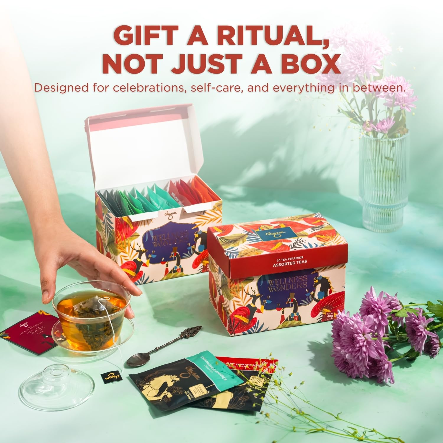 CHAYAM Assorted Tea Bags Variety Pack | 20 Pyramid Tea Bags - 5 Flavours x 4 each | Tea Bag Sampler Assortment | Green Tea, Herbal Tea Gift Box
