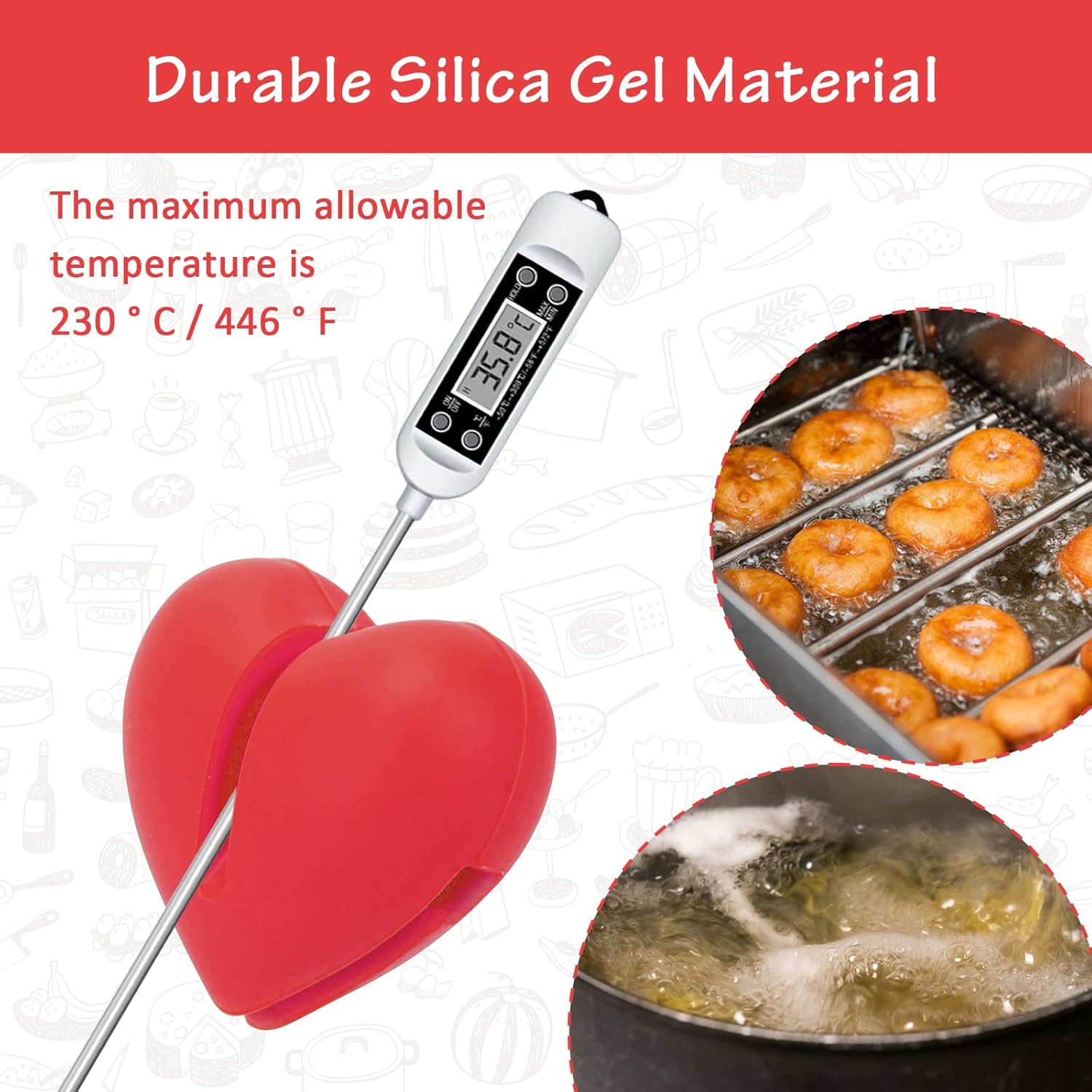 - [ Well Made]: The digital thermometer holder is made of edible silica gel material, durable, safe, and harmless for the body, and can be safely used.