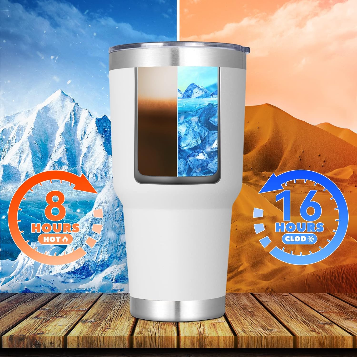 - Vacuum Insulated Tumbler: The stainless steel tumbler is vacuum double insulated. Insulated vacuum double wall design keeps your drinks hot for 8 hours and cold for 16 hours. The tumbler surface stays cool to touch. Providing a more enjoyable drinking experience.