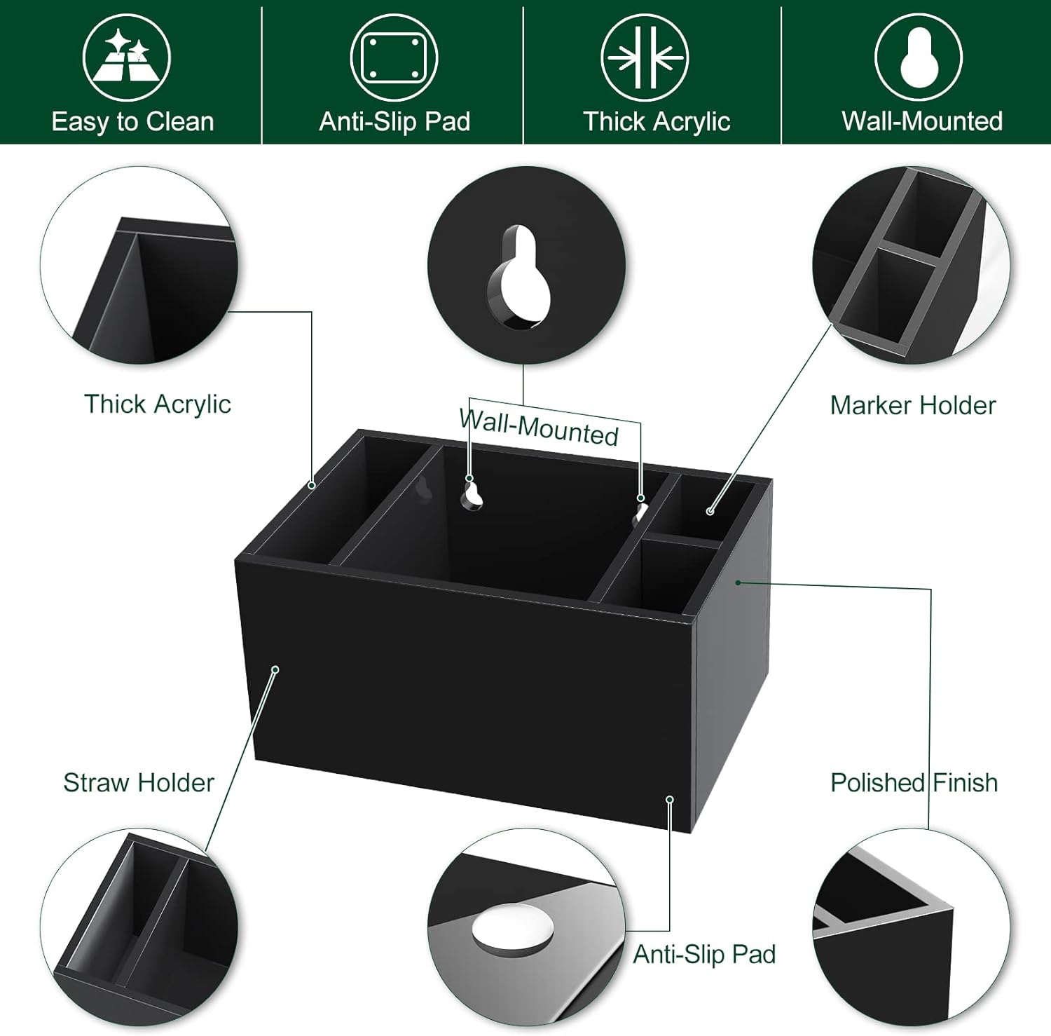 Cup Holder With Marker Slot, Party Dispenser Acrylic Organizer, Mark Your Drink Caddy, Modern Bar Counter Decor, Black