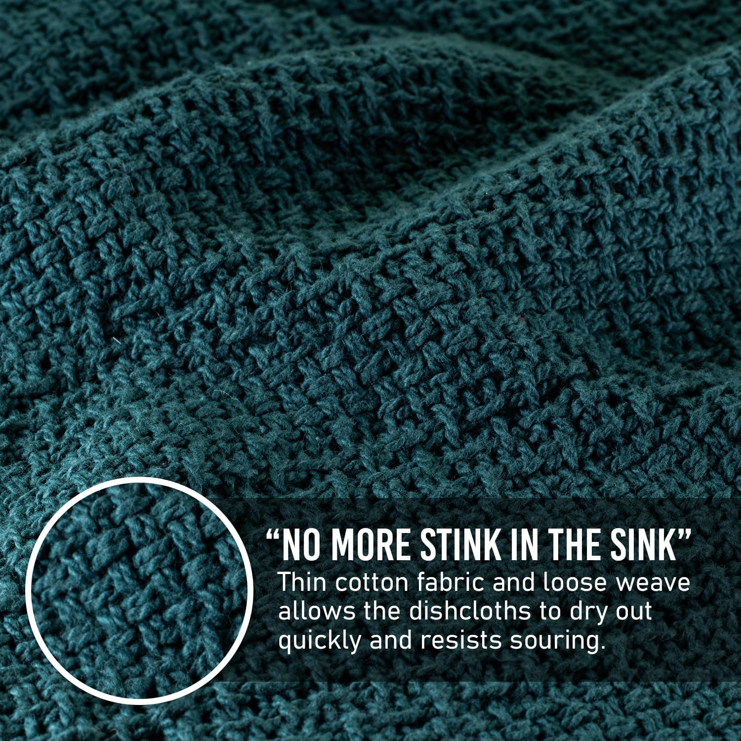 Old Fashion 100% Cotton Dishcloths - Set of 4 Mixed Colors - 2 Teal /2 Natural -11" x 11"