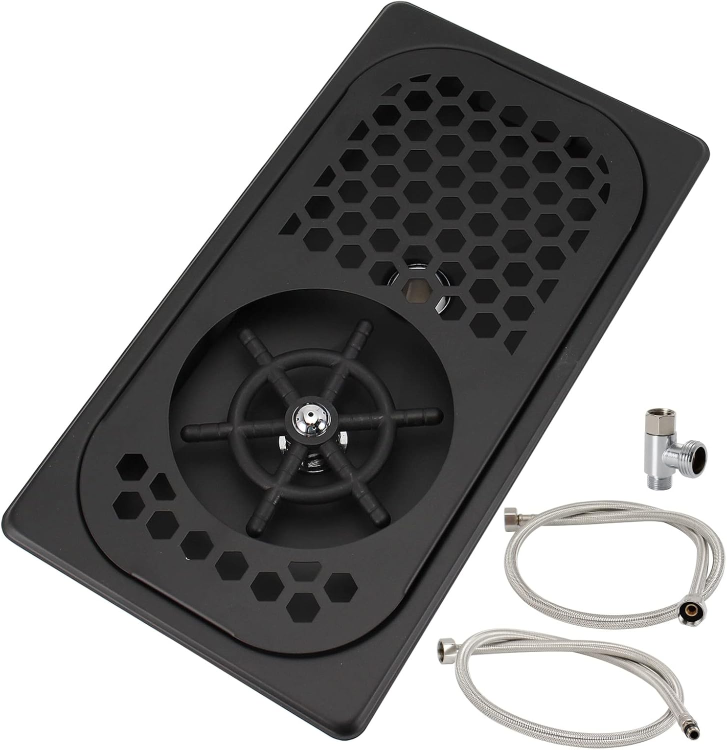 - Package Indludes: one Glass Rinser , one inlet pipe, one outlet pipe, and one 3-way tee connector adapter