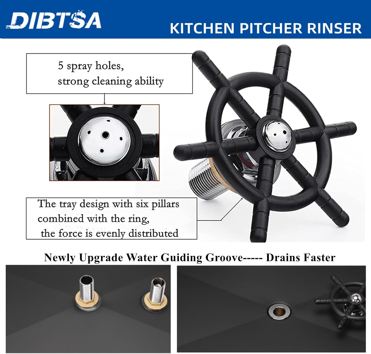 DIBTSA Pitcher Rinser, Stainless Steel Cup Washer Cleaner, Glass Rinser for Household and Commercial (Matte Black, 12.8 x 6.9 x 1.06 inches)