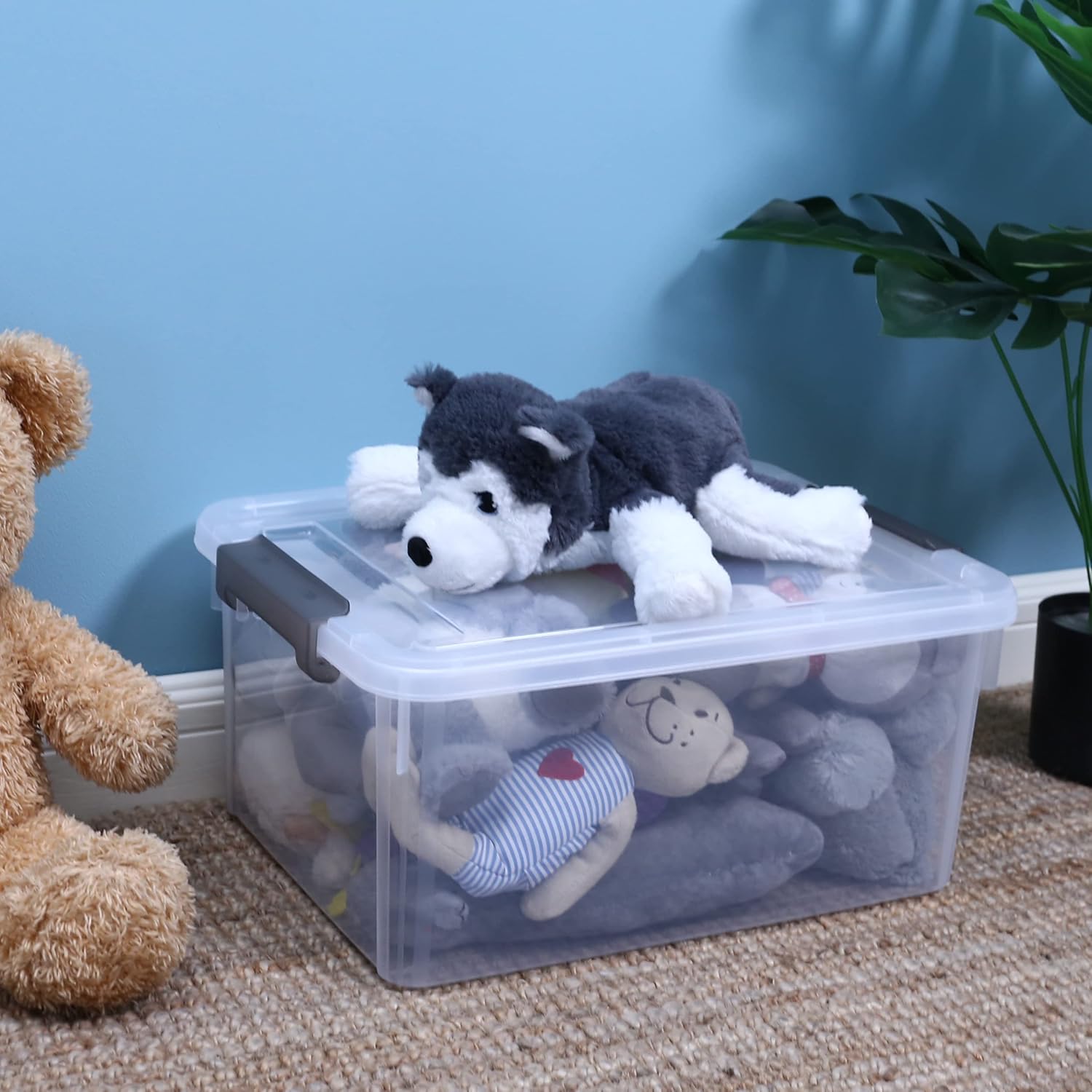 - 【17-quart Capacity】Package includes 6 containers for organizing, single measuring 15.94"L * 11.61"W * 7.28"H, capacity 17 QT. Suitable for large storage needs in the closet, garage, bedroom, basement, camping, office, etc