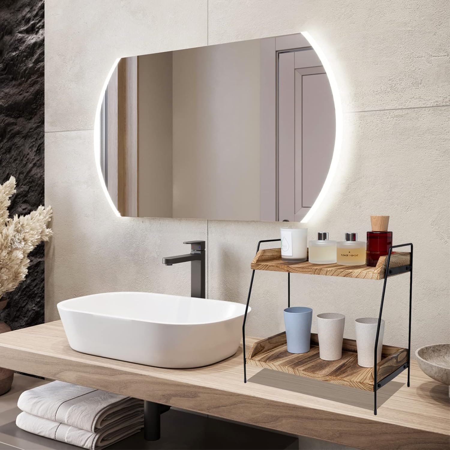 Coffee Bar Accessories and Organizer, Coffee Station Organizer 2 Tier Bathroom Counter Organizer, Wood Coffee Tray, Bathroom Vanity Organizer, Countertop Shelf for Kitchen, Coffee Lover