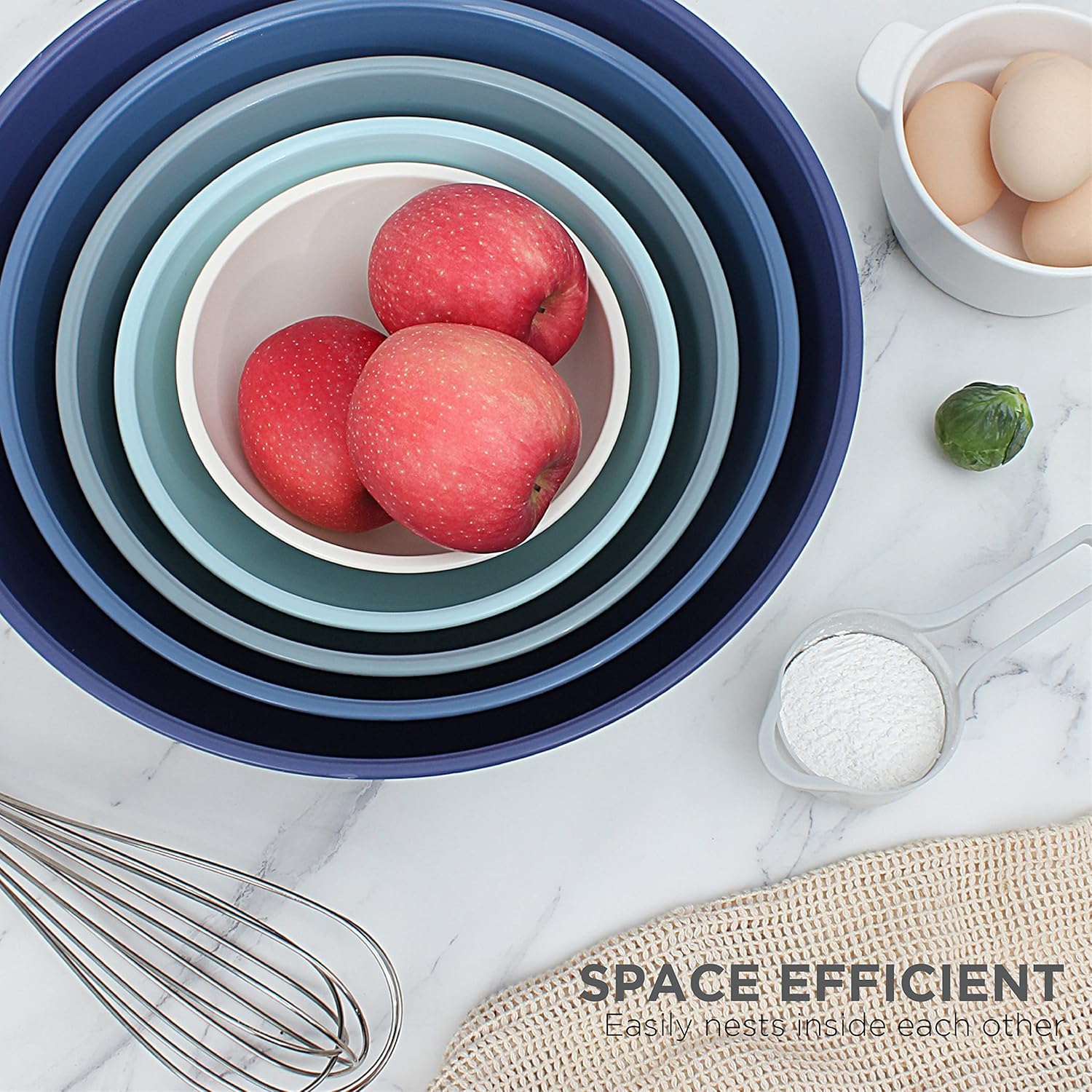 Rae Dunn Mixing Bowls with Lids - 10 Piece Plastic Nesting Bowls Set includes 5 Prep Bowls and 5 Lids (Blue Ombre)