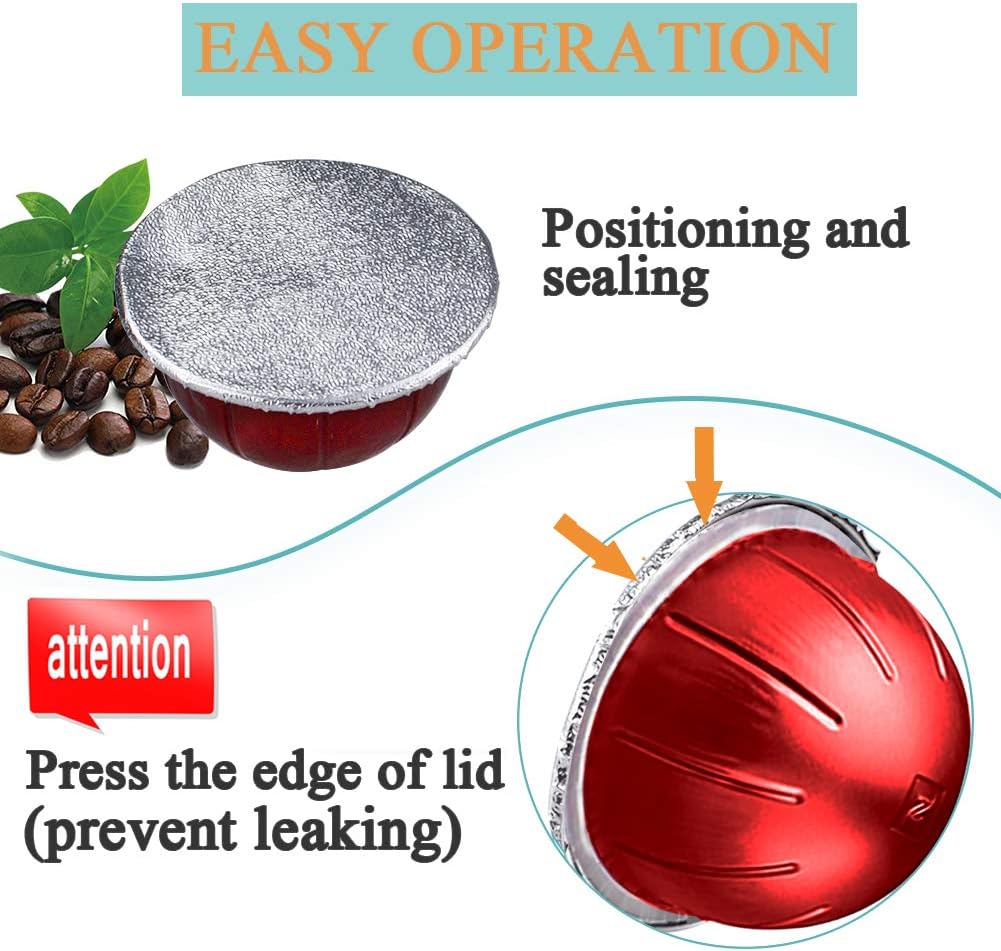 - Easy to operate: Using a small sciccors to remove the used vertuoline foils. Clean and fill your fine grind coffee. Place the foil lids on the rim and then gently press around the rim to seal Nespresso vertuoline or vertuoplus pods