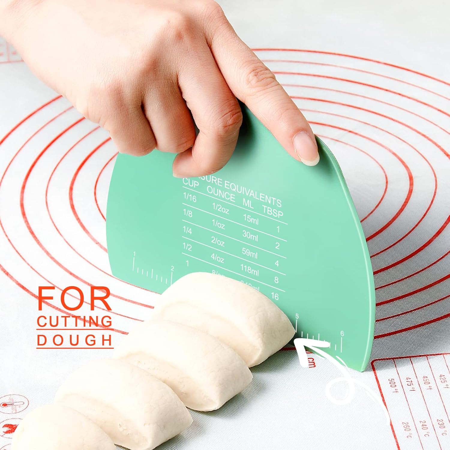 - Easy to Clean and Dishwasher Safe: One-piece design, easy to clean, can easily remove surface stains and not easy to stick dough. Firm, thick and reusable, no irritating odor, high temperature resistance. Upgraded dough scraper made of high quality, food grade plastic to ensure your health. Dishwasher safe without the burden of washing