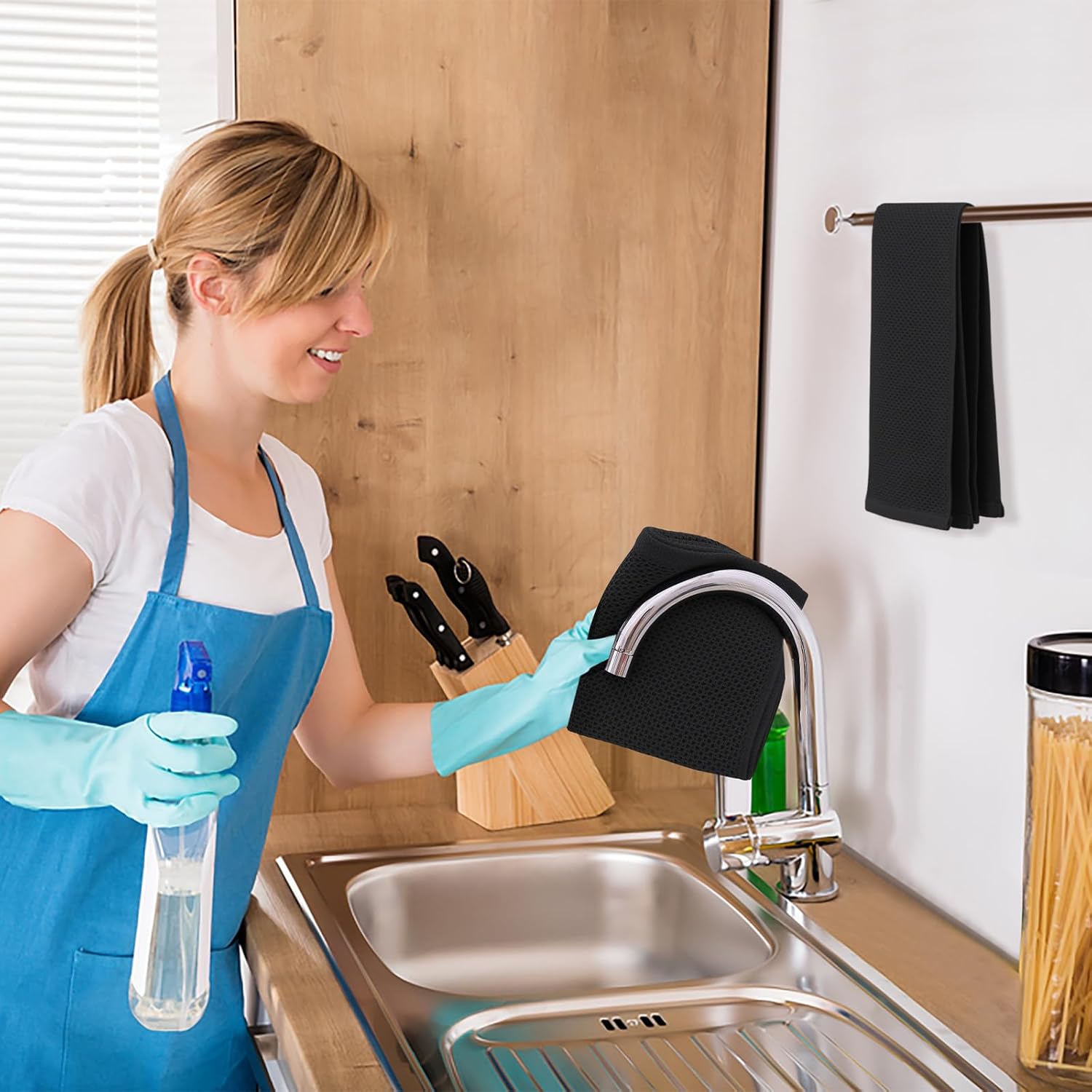 Kitinjoy 100% Cotton Waffle Weave Kitchen Towels, 8-Pack Super Soft and Absorbent Dish Towels for Drying Dishes, Kitchen Hand Towels, 13 in x 28 in, Black