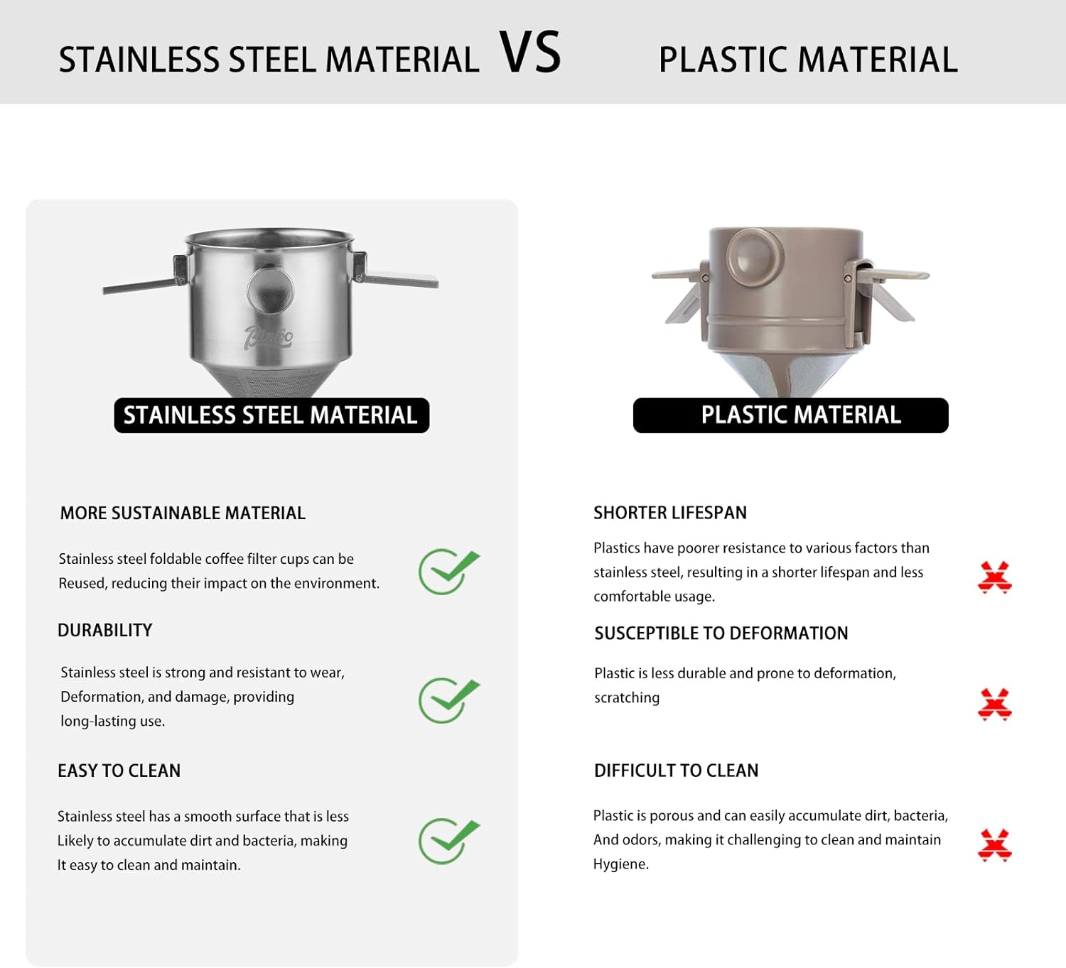 - 【Double-layer Stainless Steel Filter Mesh】Made from high-quality 304 stainless steel, this coffee filter cup is sturdy and corrosion-resistant. Double-layer stainless steel filter mesh allows for more even coffee extraction and prevents fine coffee grounds from passing through. The stainless steel material ensures that your coffee retains its natural flavor and aroma, and is easy to clean and maintain.