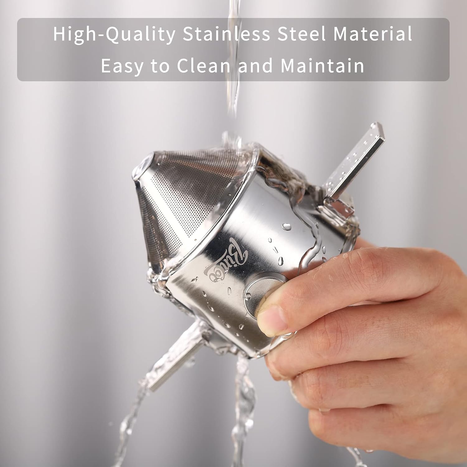 - 【Easy to Clean】Portable pour over coffee filter The single coffee pour-over rinses quickly and is dishwasher safe. No more paper filters with our coffee strainer made from sturdy stainless steel.